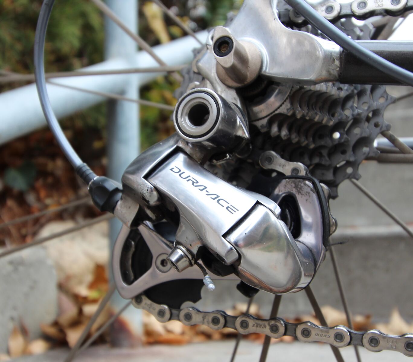 This bike has very low miles and it shows. Never crashed. Always stored indoors and professionally maintained... though, honestly, I've never had to do ANY maintenance or repairs on this bike. The Durra Ace components are bulletproof.