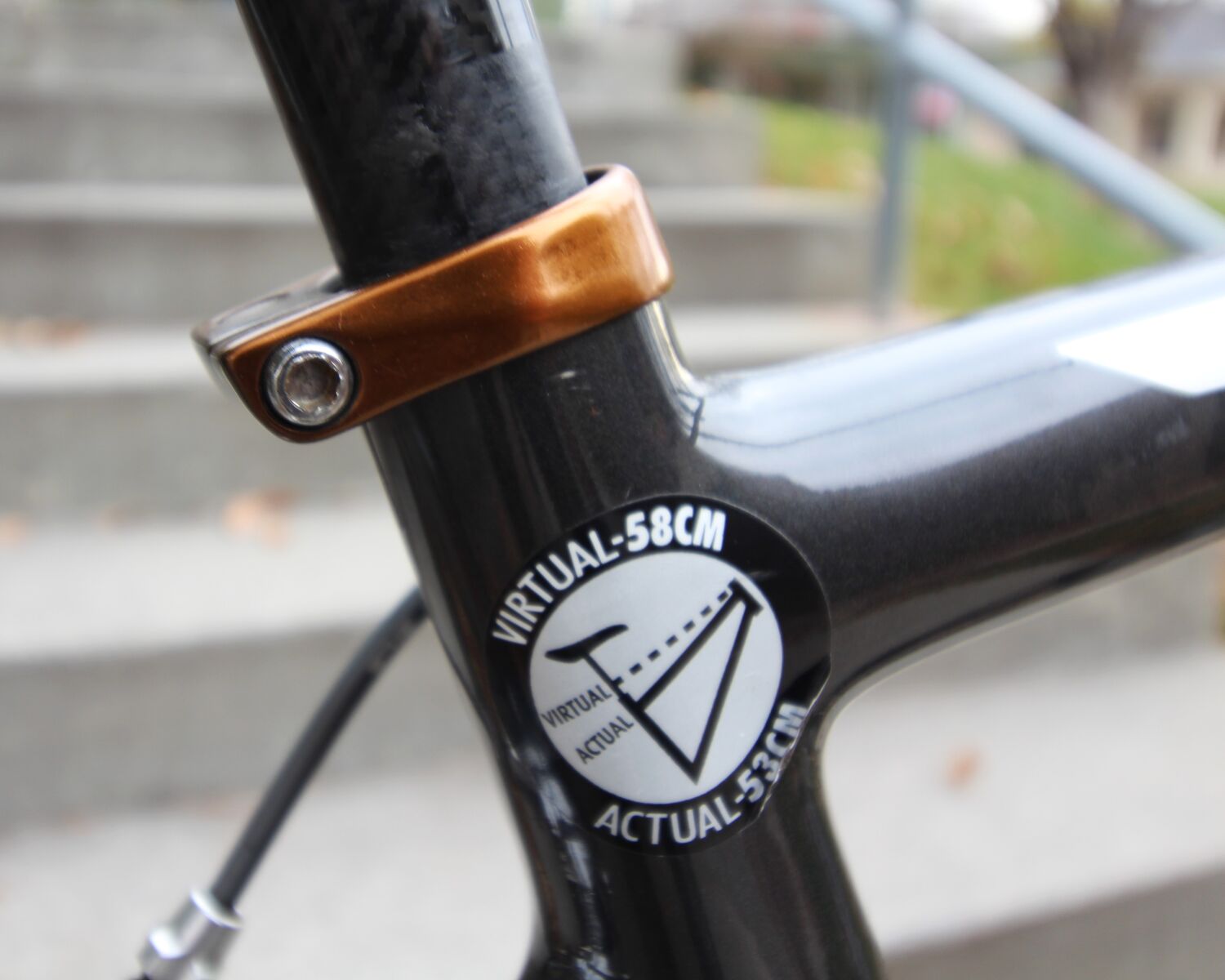 For some weird reason Trek calls this frame size a "virtual 58cm"... which I guess means that it can be ridden by a wider range of riders comfortably. (Giant does the same thing with their sizing... using "XS, S, M, L, XL" instead of the traditional "48,50,52, 54, 56, 58, 60, 62cm" sizing that has been used for road bikes for decades if not centuries. This allows them to build / stock fewer frame sizes and build fewer frame molds... which of course saves them money.)