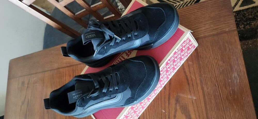 ZelleVans Range EXP size 8.5 NEW in the box! A full skate shoe design, but more tread for trails, winter street, club, or at camp. Black on black.