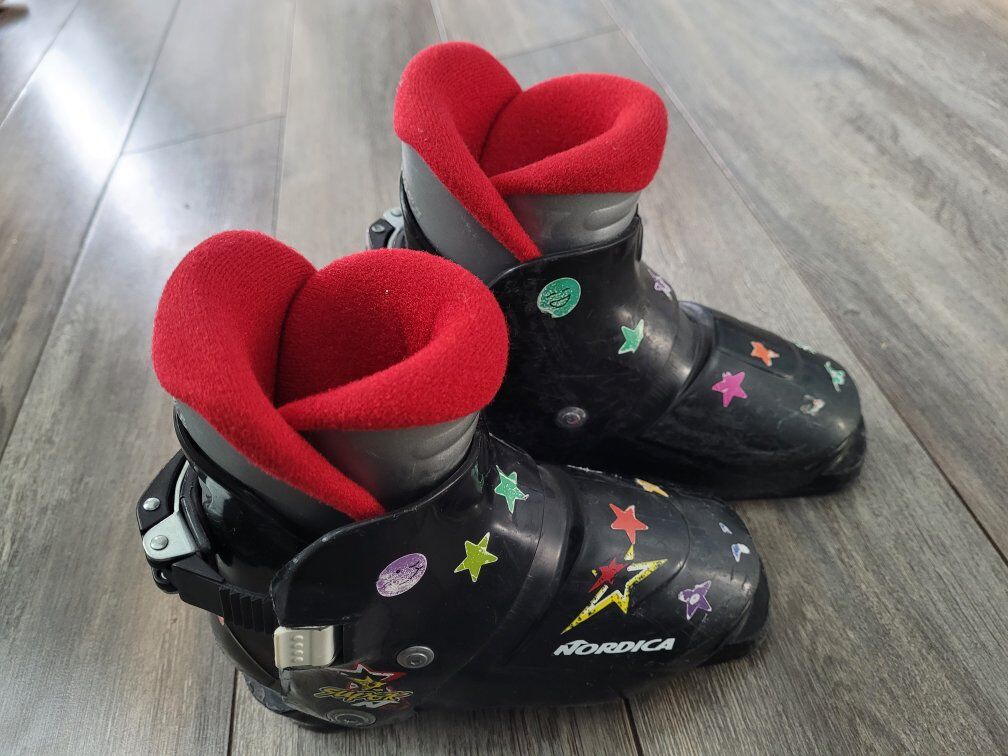Downhill ski boots for little ones. They work great! STICKERS INCLUDED!