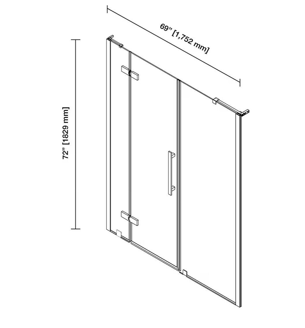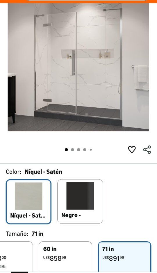 Shower Glass Door 72 inch. Color Satin Nickel. New