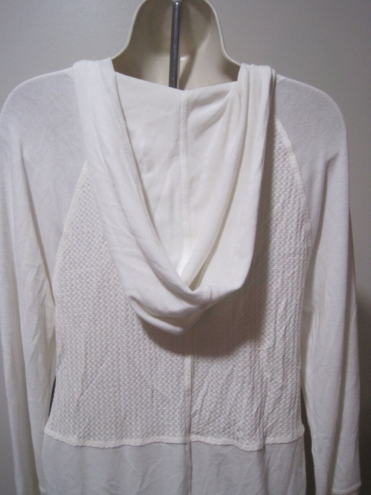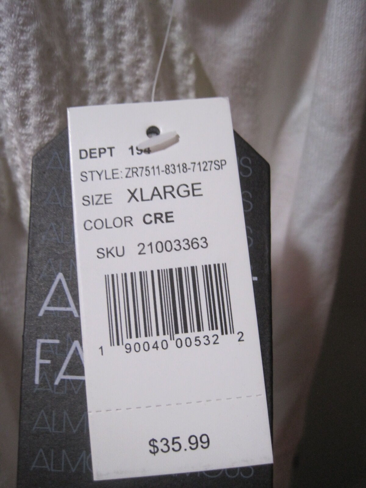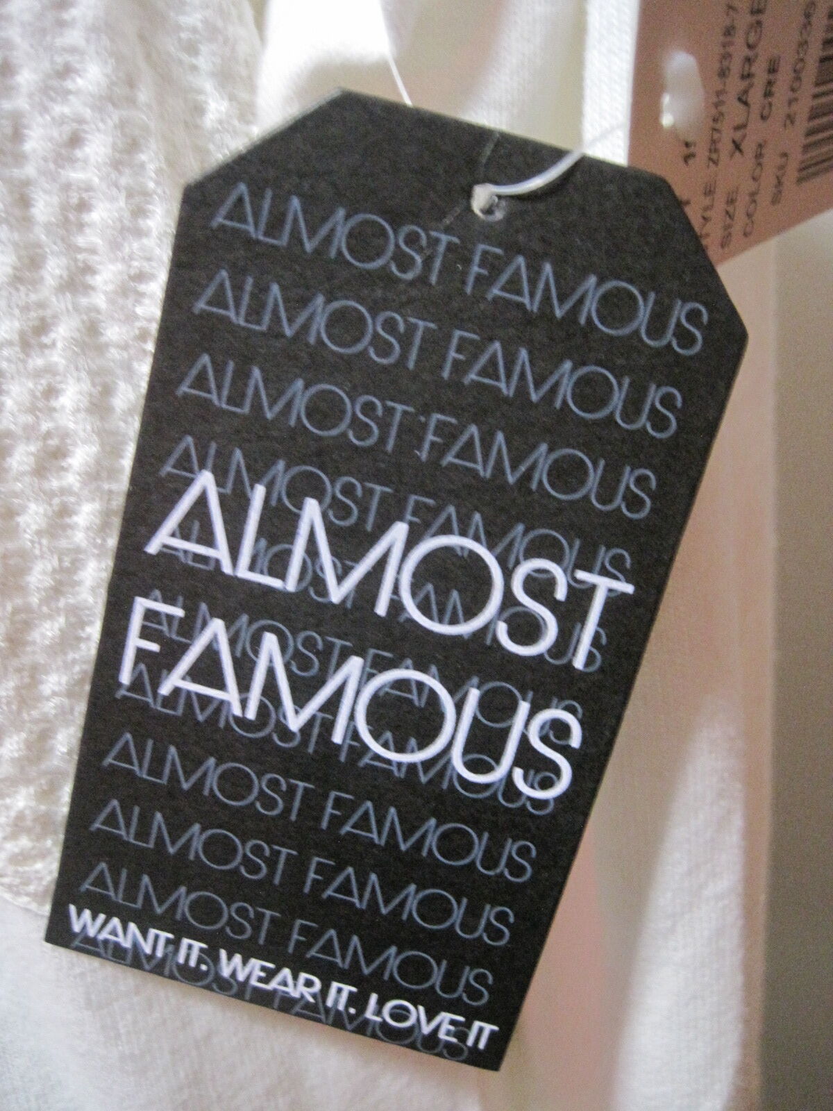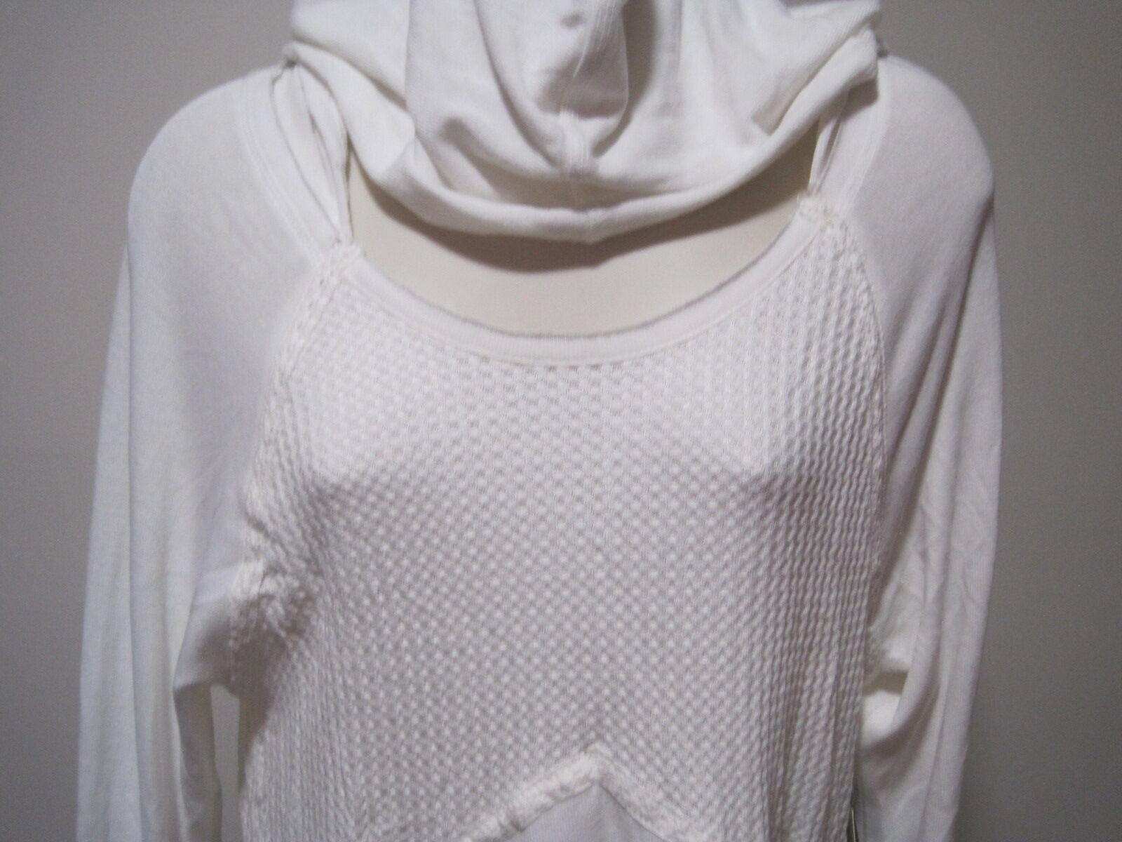The Almost Famous women's size extra large cream white hoodie is a stylish and comfortable knit shirt perfect for various occasions such as travel, parties, or casual wear. This long sleeve shirt features a solid pattern, round neckline, and pullover closure for easy wear. Made of a blend of polyester, spandex, rayon, and other materials, this hoodie offers a regular fit with a hood and stretch fabric for added comfort and flexibility. Ideal for the winter, fall, and spring seasons, this basic t-shirt from the trusted brand Almost Famous is a versatile addition to any woman's wardrobe.