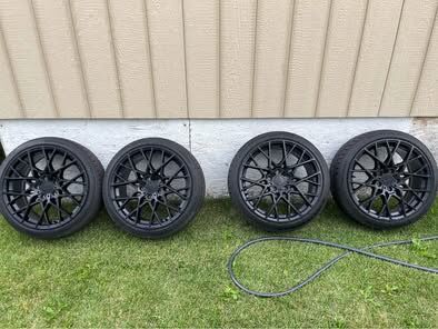 Tire size is 215/40/r18. They have no pinched holes or any issues. I don't own the car anymore so I have no use for the wheels and tires. Asking 2100.00