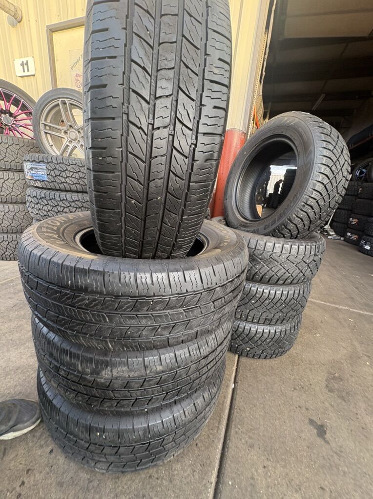 USED SET OF TIRES !! the brand is NATIONAL COMMANDO HTS 255/65R18 85% tread. Free mount, balance, and brand new valve stems. DOT 2023 Price $300 for all 4 90 day financing available through Acima, message for details. Also make sure to check out our google reviews just search “Oliver tires” We carry a lot of other tire sizes new and used. As well as used and new wheels. If you have any questions call or text. Espańol; 8016885139 Office: 8016620227. English: 8015029309 Or visit us at 3010 west 500 south. Salt Lake City Utah. Shop #11