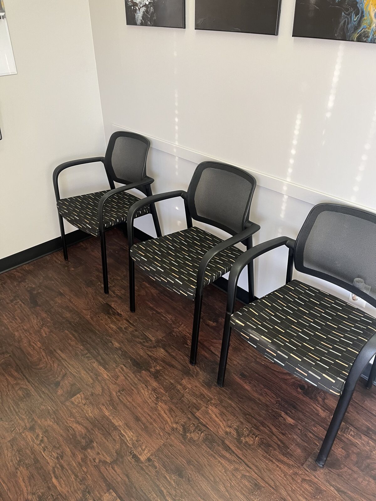 Matching set of "All Steel" brand office chairs. The backs pivot for comfort. Comes with table and vase. Chairs were over $100 each when new. Make a fair offer.