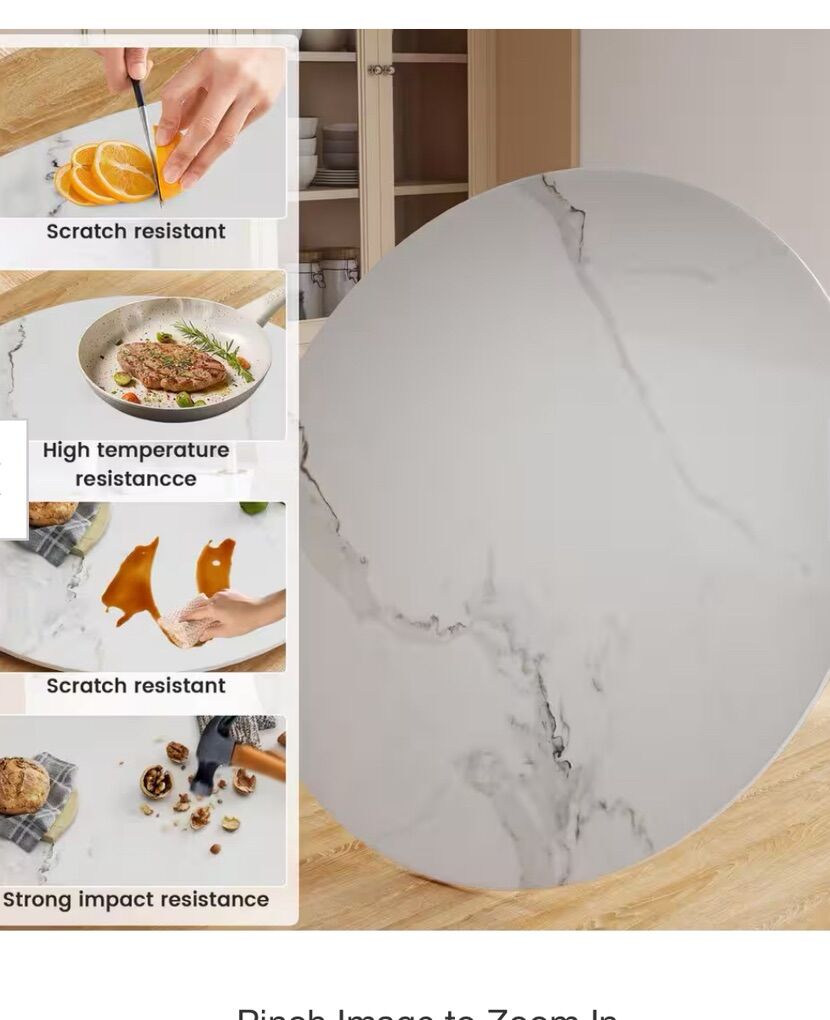 Turntable features-no assembly required, ready to use right out of the box for maximum convenience Size 31.5 in. Dia, recommendation: leave 8-10 in. of space on either side for tableware 360° design: easy access to foods without reaching back and forth smooth edges for safety Weight capacity: 0.47mm thickness enhances load-bearing capacity, up to 150 lbs. suitable for multi-layer cakes, large vases, decorations and so on (tip: distribute weight evenly for optimal balance) Material: made from heat-resistant sintered stone, features a smooth, wear-resistant, shatter-proof, and impact-resistant surface, its sturdy and durable structure ensures a long service life, providing a safe and reliable Versatile use: ideal for kitchens, coffee tables, or parties, compatible with round or square tables