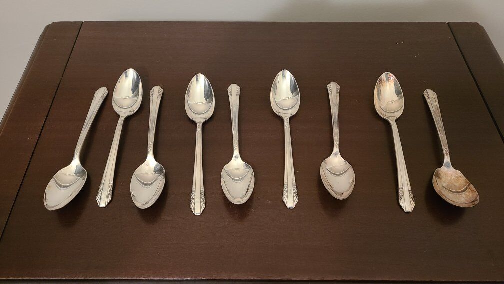 8 regular spoons 1 soup spoon Rogers & Bros Picardy pattern Silver plate More pictures above