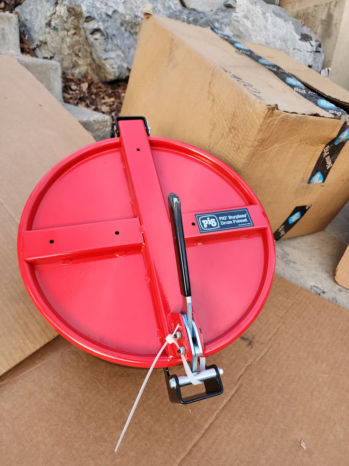 Wide-mouth funnel with patented Burpless design smoothly drains a 5-gallon bucket in as few as 17 seconds and delivers fast, no-splash pouring and one-hand latch.