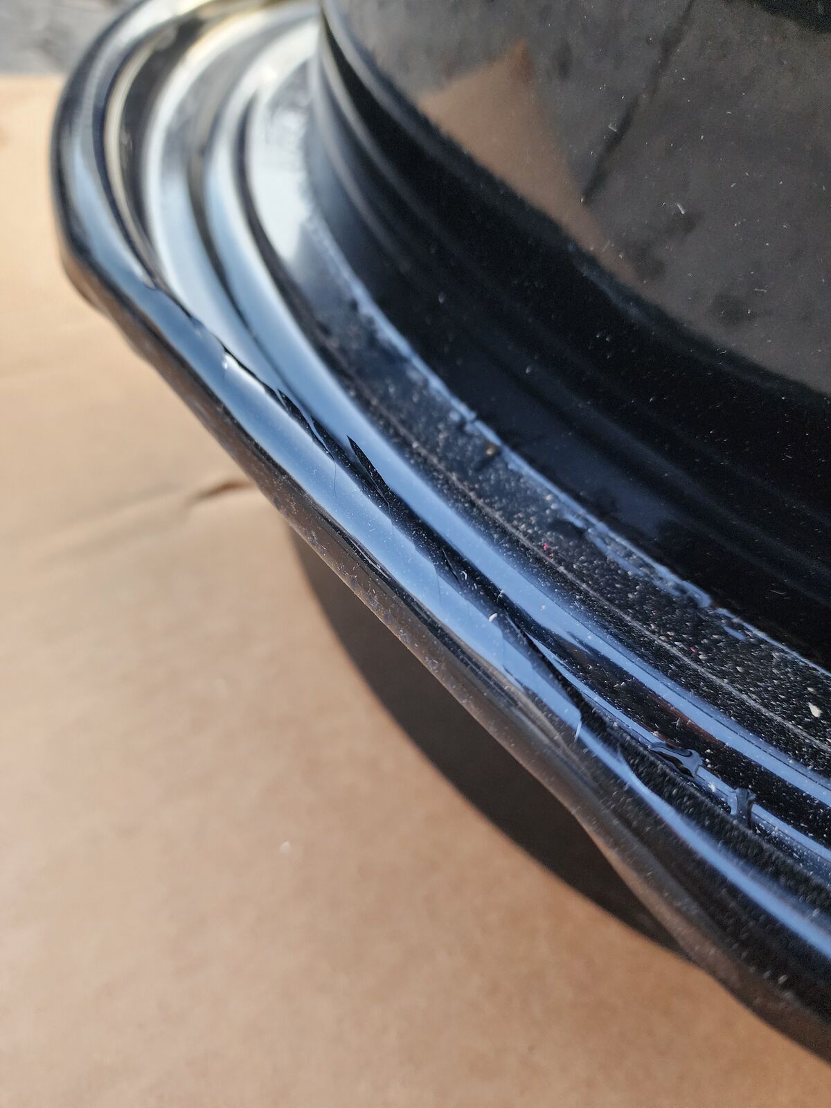 New Dented on one side rim. And handle is scuffed.