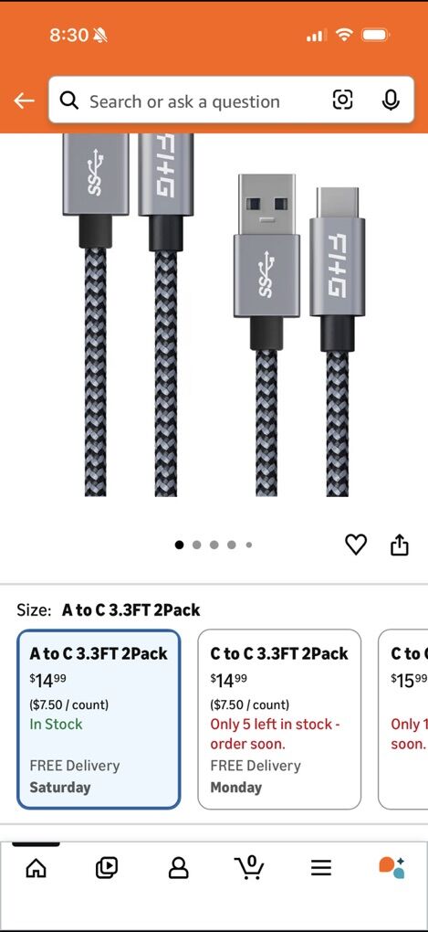 VenmoI have 3 usb to usb-c charging cables. $5 each or buy all three for $10.