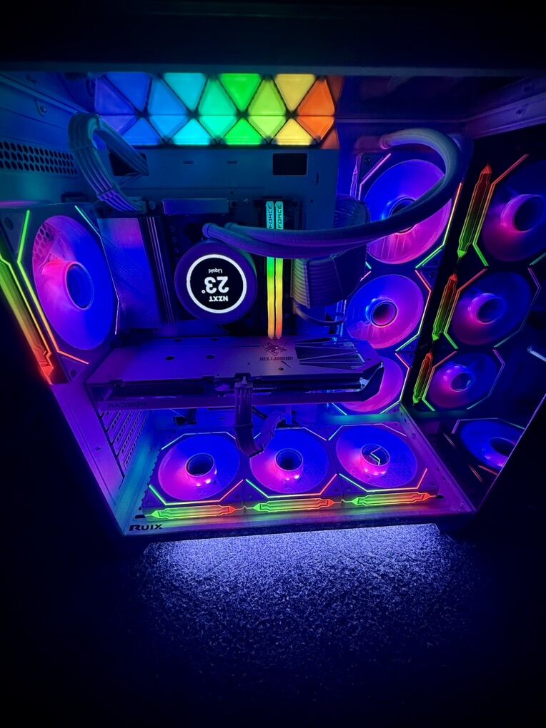 Specs: •Nvidia GeForce RTX 5070 or AMD Radeon RX 7900 XT VR Ready • AMD Ryzen 7 or Intel 12 core i7 Processor • 32GB Ram RGB (You can change the colors/modes) • 360mm Water Cooler (You can change the colors/modes) • 1TB SSD NVMe M.2 • RGB Fans (You can change the color/modes) • 700W GOLD Power Supply • White Tempered Glass Gaming Case • White LED Underglow • WIFI & Bluetooth Ready • Fresh install of Windows