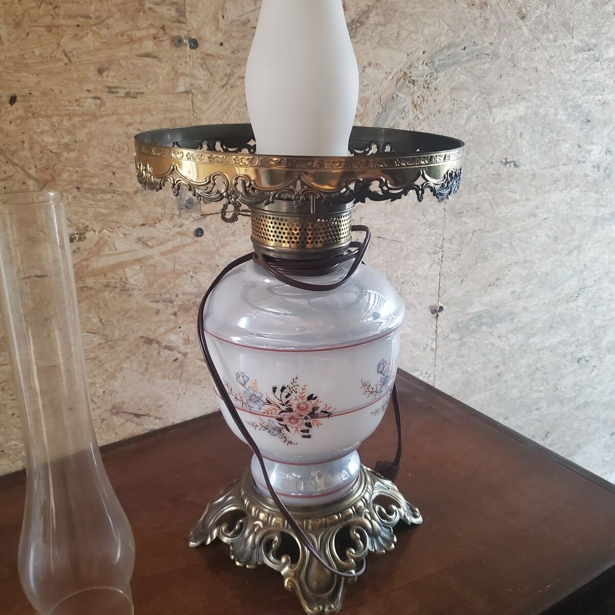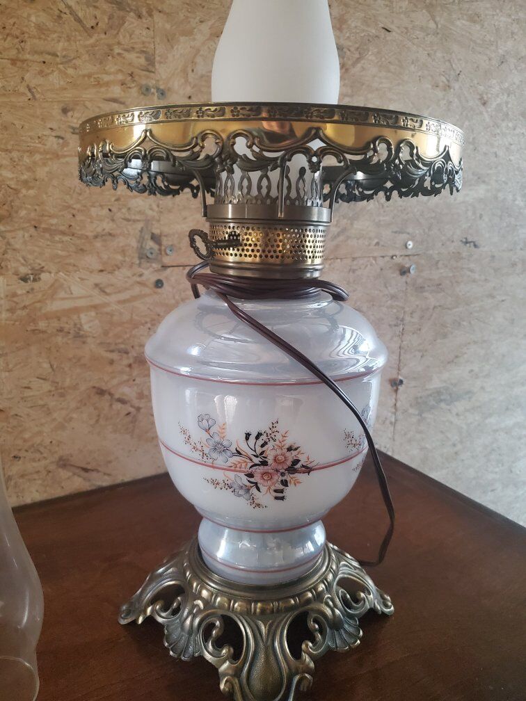 commonly referred to as a "Gone With the Wind" lamp. These lamps were originally designed to use kerosene or oil but were often later converted to run on electricity like this one has.