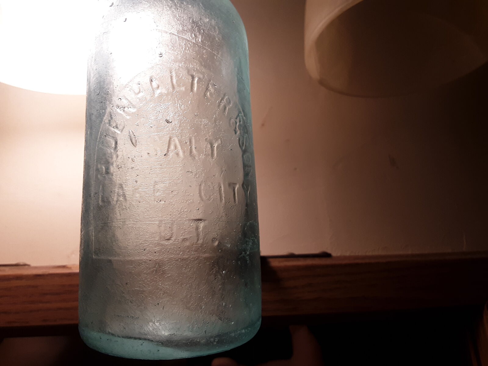 Zelle1880 Hutch soda pop bottle H Denhalter & son territory Salt Lake City Utah with Hutch cap. 1880-1910 H Denhalter & son bottled distributed Hutch Hutchinson soda. I belive this bottle to be first run because the date on the cap says June 17 1879 and the bottle has a lot of imperfections like bubbles. It's of crude craftsmanship and that is what makes it so interesting. When you hold this bottle you truly realize how primitive it truly was at that time. I am in Murray once a week, could arrange pickup there, or i could mail it to you. Will consider offers.
