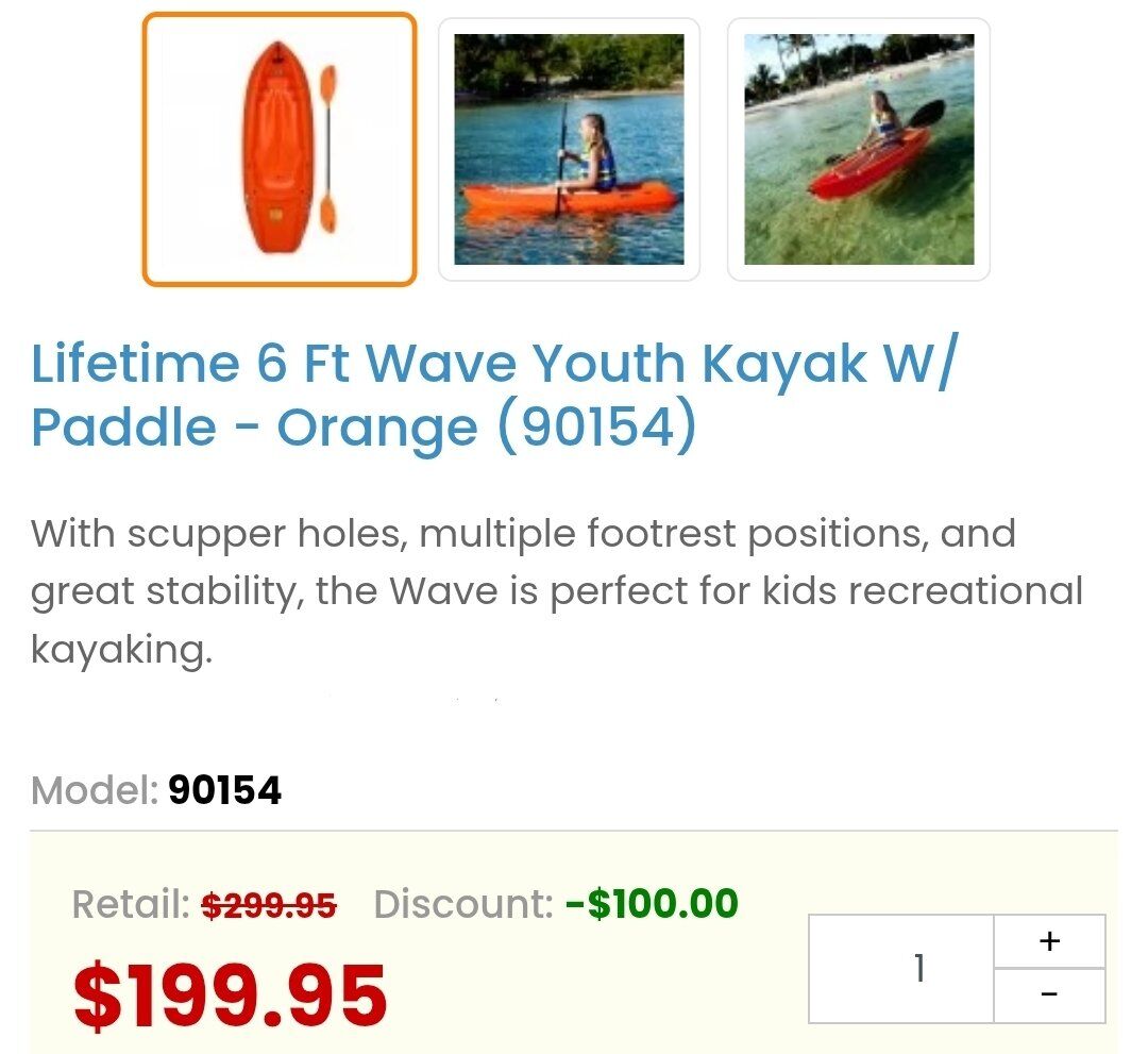 Lifetime 6 ft Wave Youth Kayak w/ Paddle - Orange