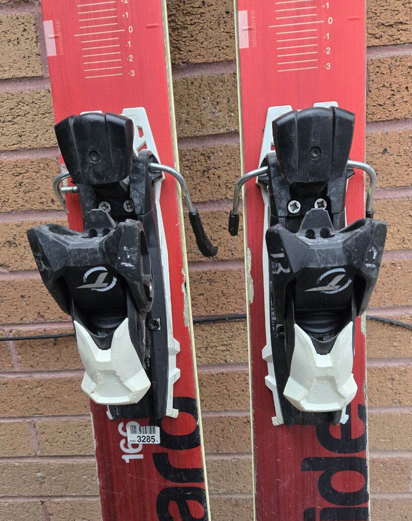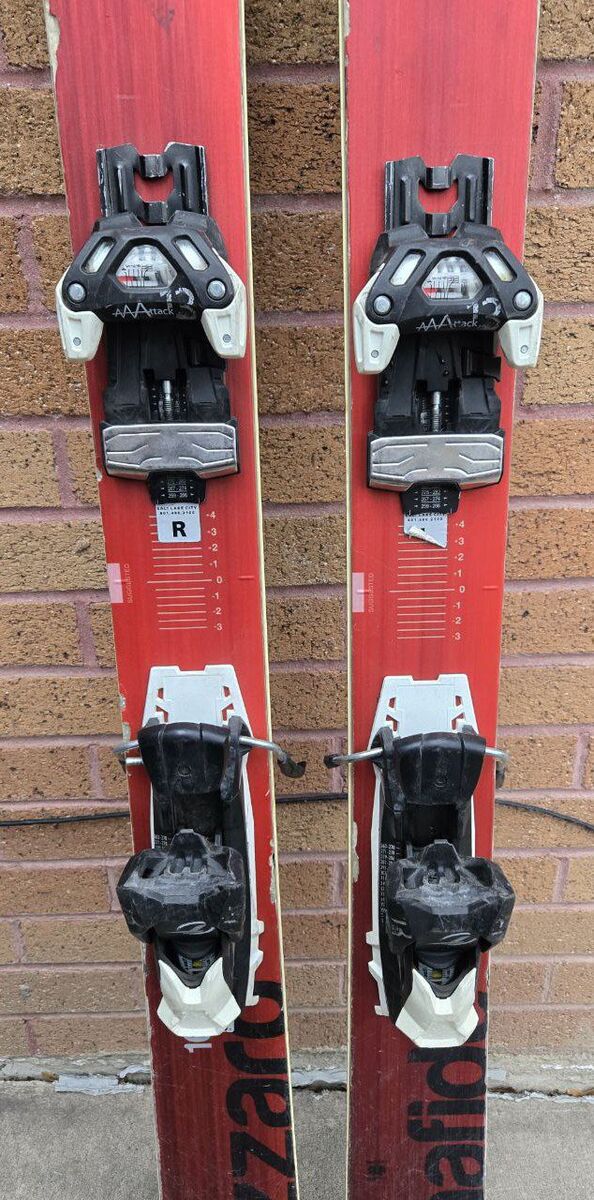 VenmoThese are a great pair of 166 cm Blizzard Bonafide all mountain downhill snow skis with adjustable to your boot size Tyrolia Attack 13 bindings.The skis have a great bull design on a red background. Turning Radius 19 m. Tip/Waist/Tail Dimensions 131/98/116 mm. Great all mountain skis that are in great condition. Bottoms, bases and edges are in good shape. The topsheets have some wear along the sides as seen in the pictures. Text please.