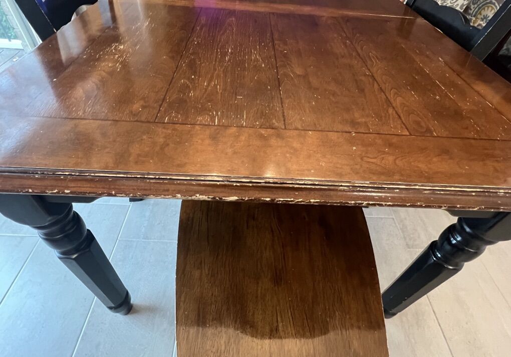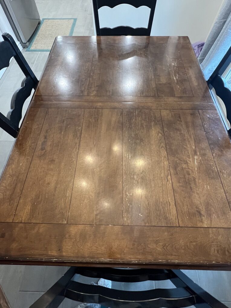 VenmoDining table with leaf and four chairs. Good solid wood in good condition.