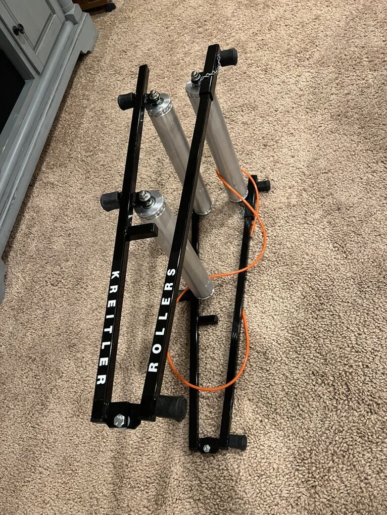 New, never used, selling for half price. These are the only rollers I could find for use within an adult size mountain bike at a 48 inch wheelbase. Would obviously work compacted for a road bike as well. Rollers are midrange 2.25. Cash only, no Venmo, you come pick up in Riverton.
