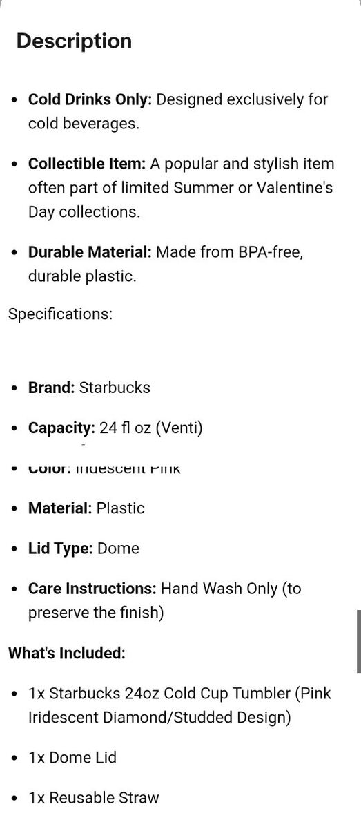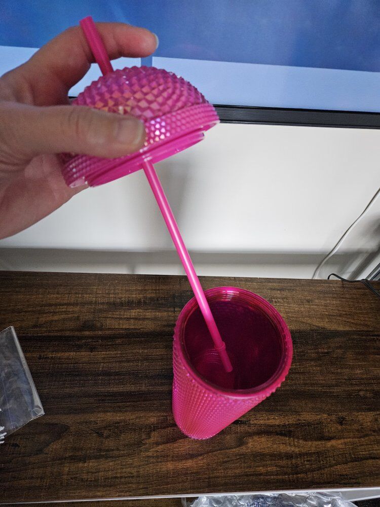 VenmoStarbucks 24oz pink diamond cut iridescent cup for cold drinks from 2025. Brand new, got it on clearance, but my daughter didn't use it. Has some light scratches on the Starbucks logo. 10¹/² inches tall to the dome lid. See pics for more descriptions. See my other ads.