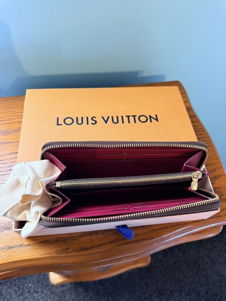 ApplePayLouis Vuitton's classic Clémence wallet is an elegant and compact design offering multiple practical features. In iconic Monogram canvas, it is given a playful, feminine feel by its brightly colored leather zipper and lining.