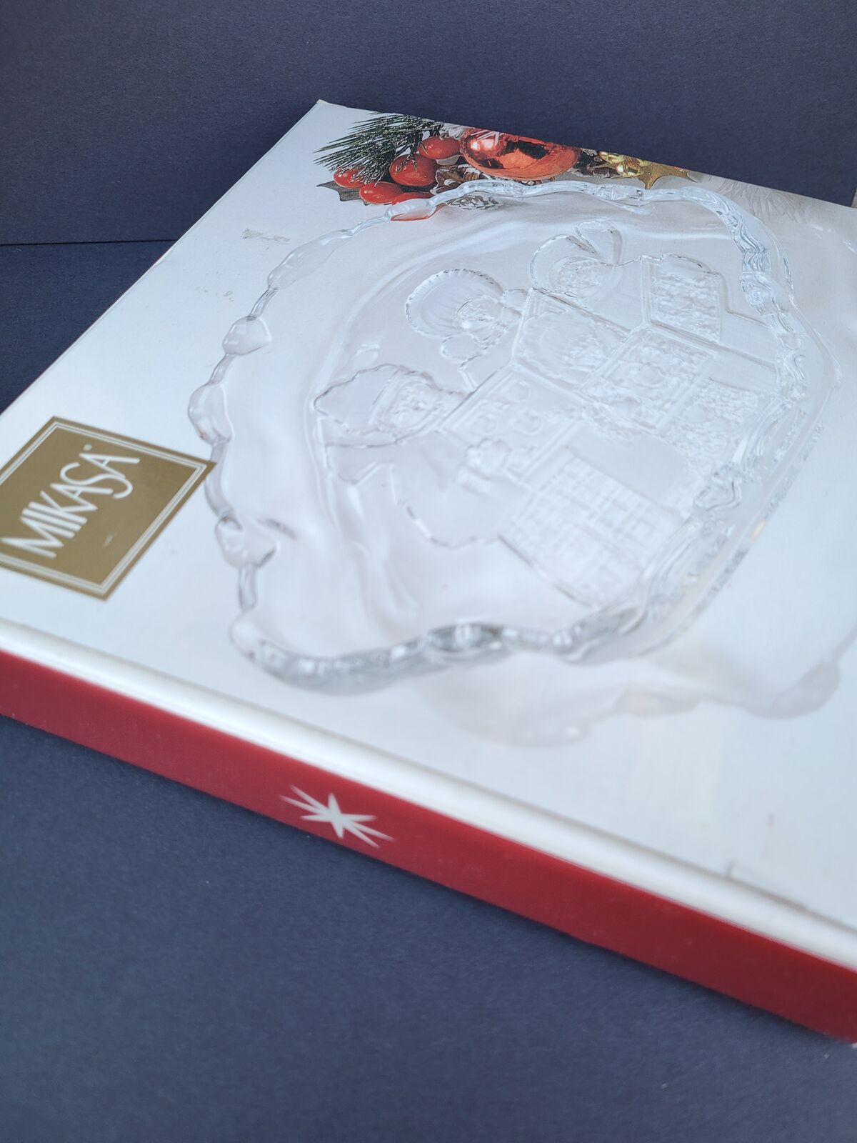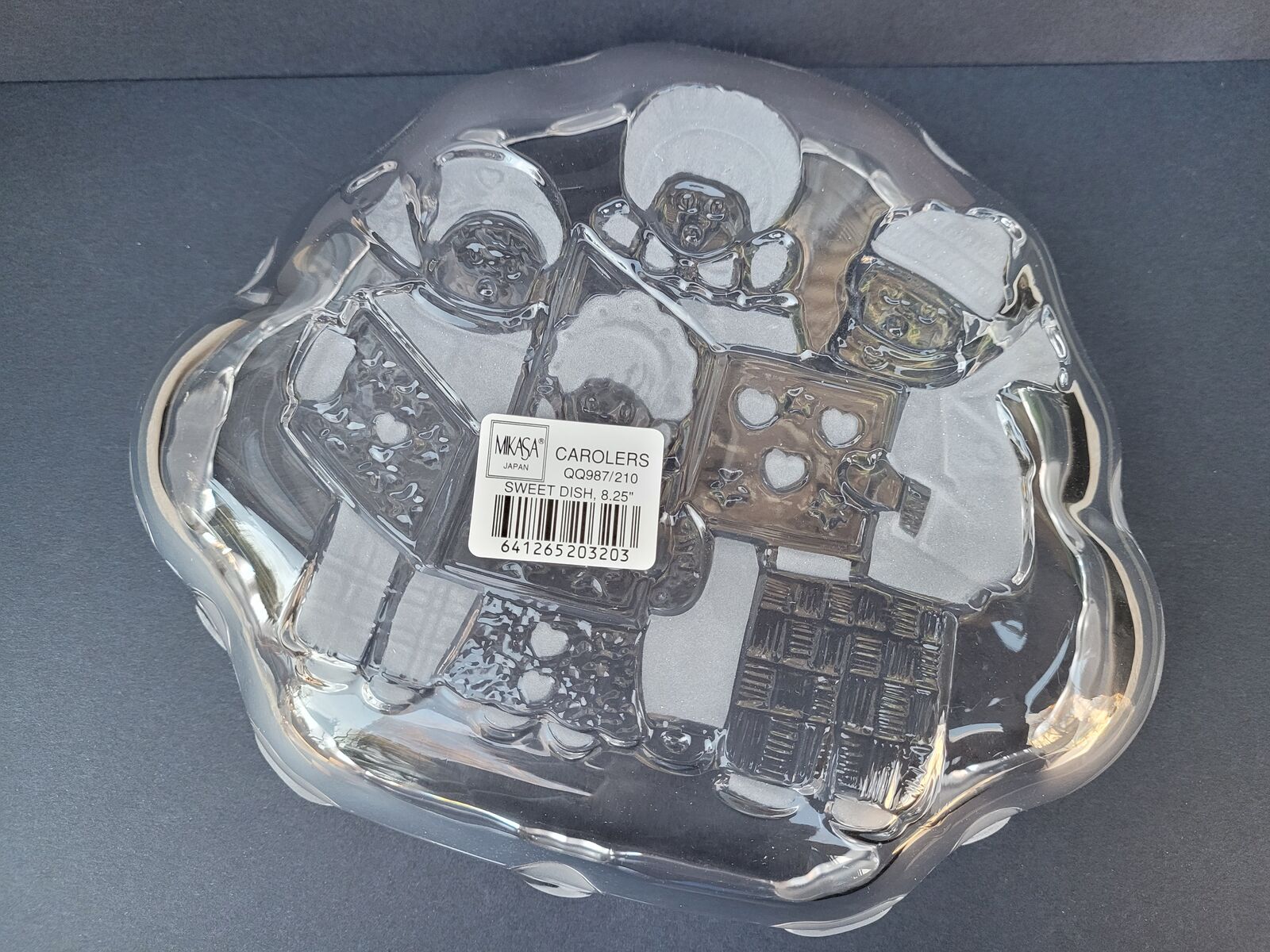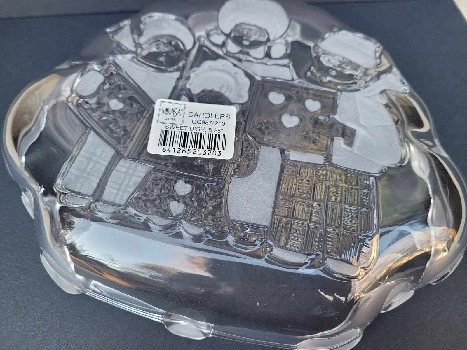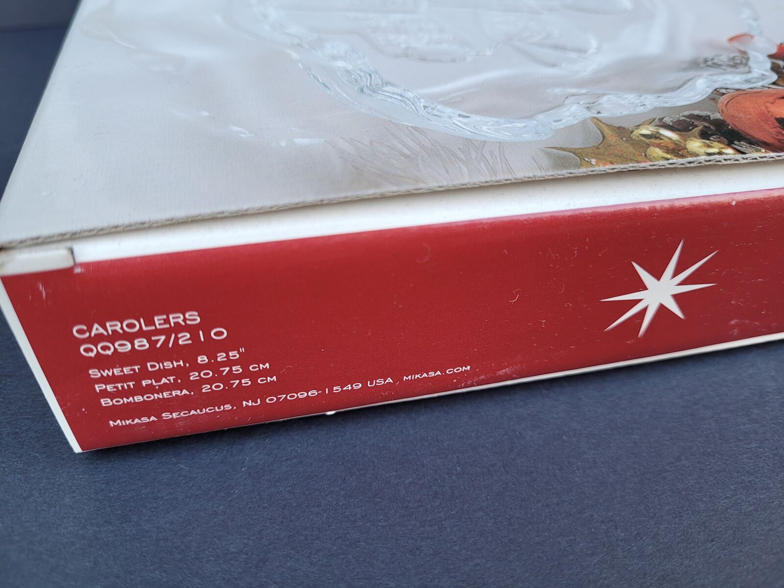 New Mikasa Carolers sweet dish with the original sticker and box. No chips, cracks, or wear.