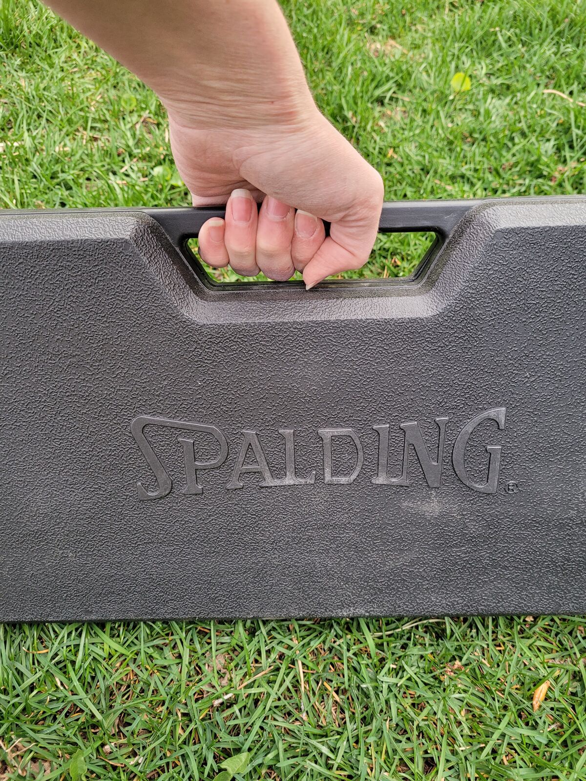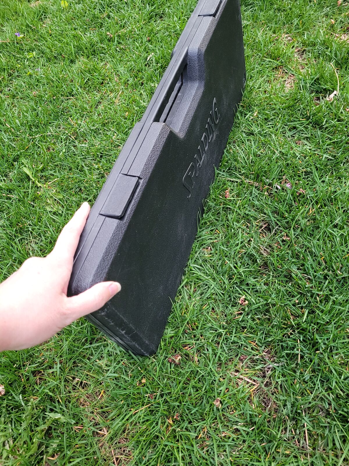 Like NEW Spalding brand horsehoe set. I don't think these have ever been used. It comes in it's very own case for handy storage. One set of horseshoes is gold, the other silver.
