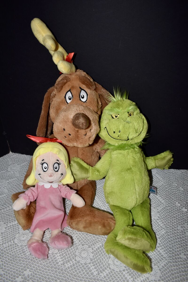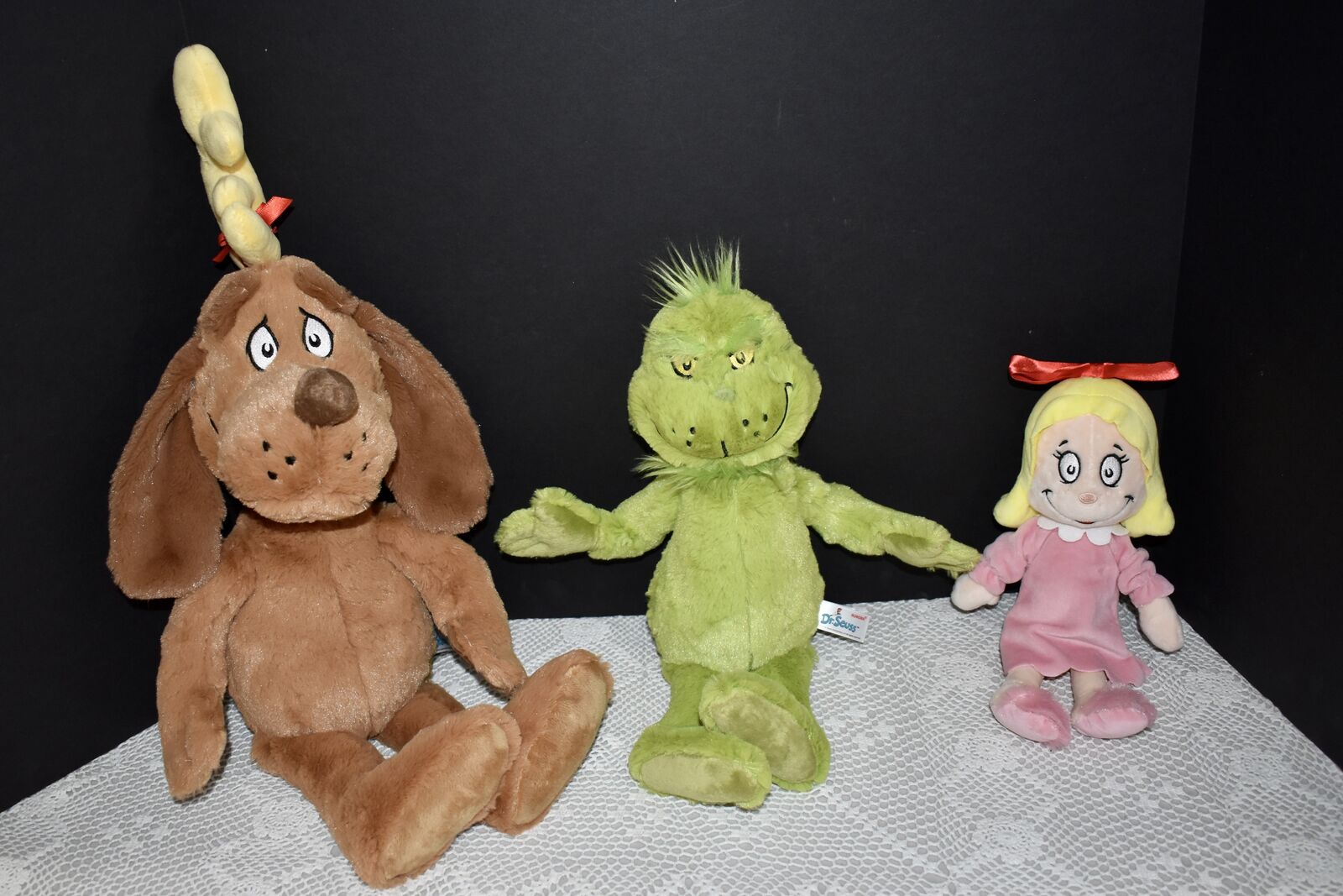 IT MEASURES… They Each Measure… Max The Dog — Approx.24 inches to the top of his yellow horn from the bottom of his feet area and The Grinch — Approx. 15 inches tall and Cindy Lou—Approx. 10 1/2 inches tall
