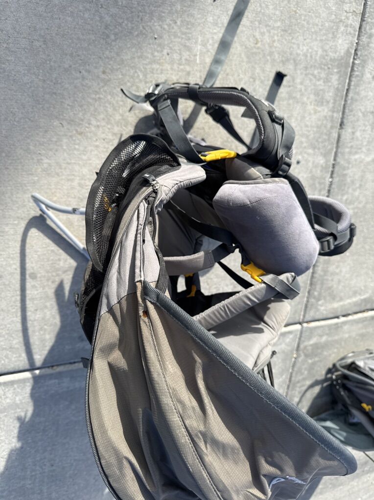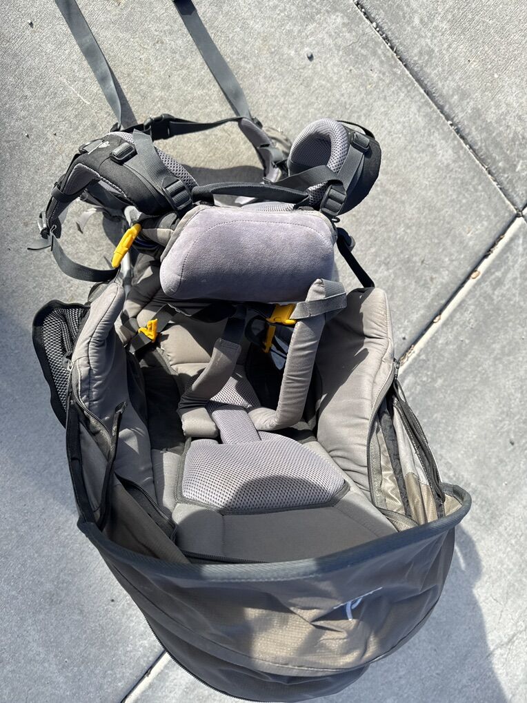 KID COMFORT: Bring your most precious cargo along for all your outdoor adventures with the Kid Comfort. Perfectly engineered to fit the needs of both children and parents. MAX VENTILATION, MAX ENDURANCE: The Aircomfort mesh back system provides maximum ventilation. A durable frame construction designed from flexible and break-proof spring steel provides provides even distribution of load and creates a ventilation space between wearer and pack. ADJUSTABLE: The Vari Slide back length adjustment system allows for personalized comfort and the best fit. INCLUDES: Sun roof, pull-forward hip fins, padded hip belt, load adjustment straps, and adjustable sternum belt to ensure that the load is distributed evenly and the backpack stays secure. Does not include a chin pad. DURABILITY: Crafted from 210 denier polyamide fabric with strong ripstop threads and PU coating, a fine, lightweight and yet abrasion resistant nylon that is optimal for lightweight backpack construction.We have two of these and use them for a couple years. Our kids are grown out of them and have no more use for them.