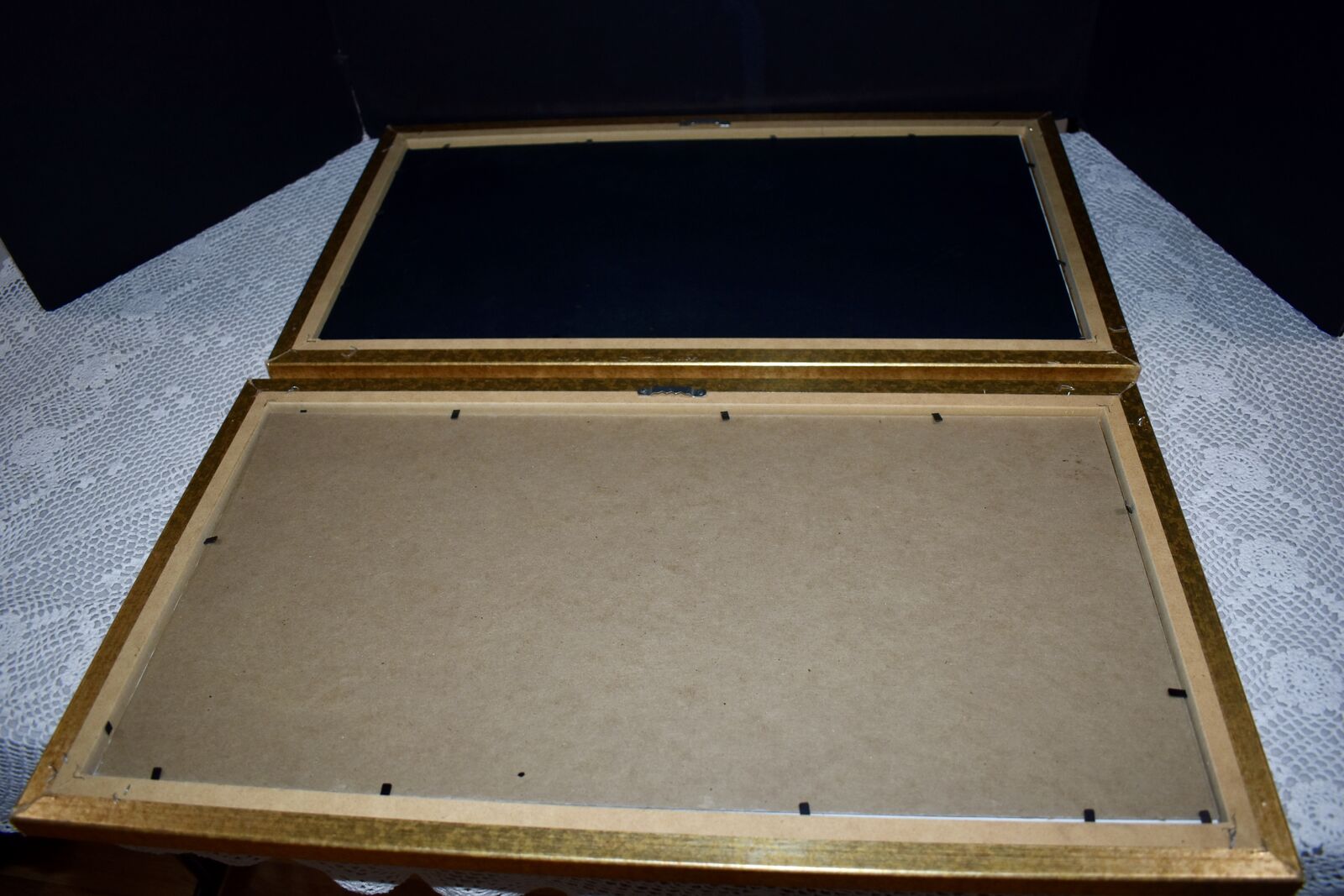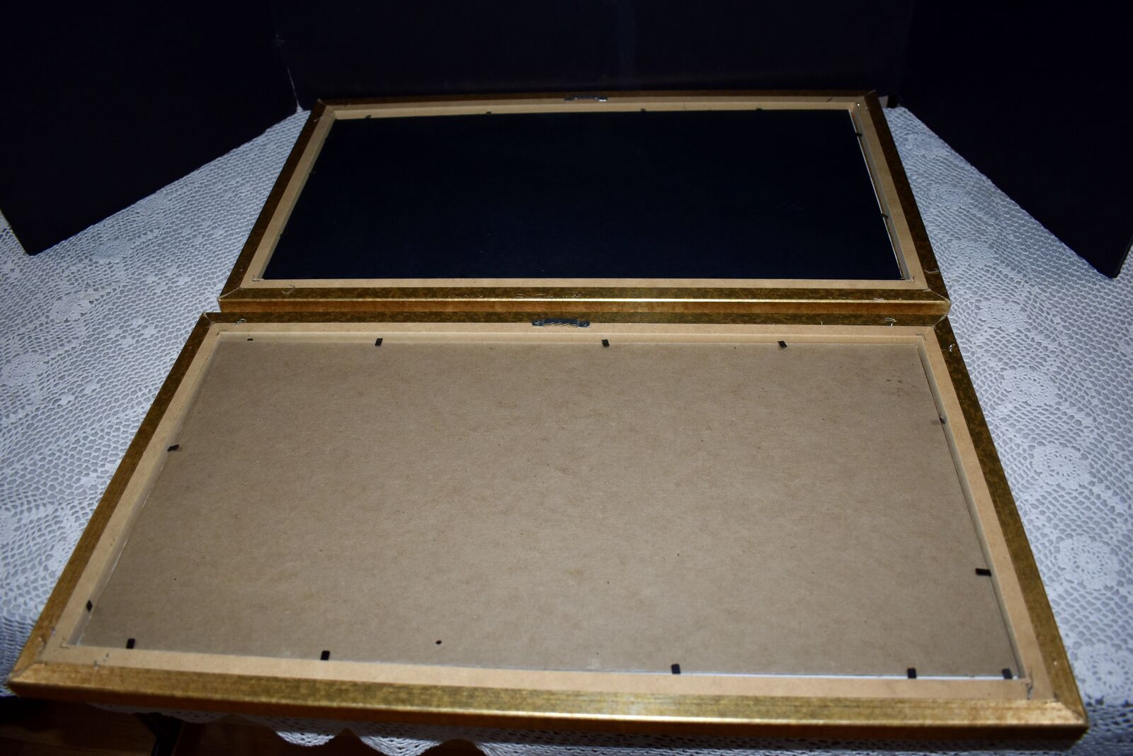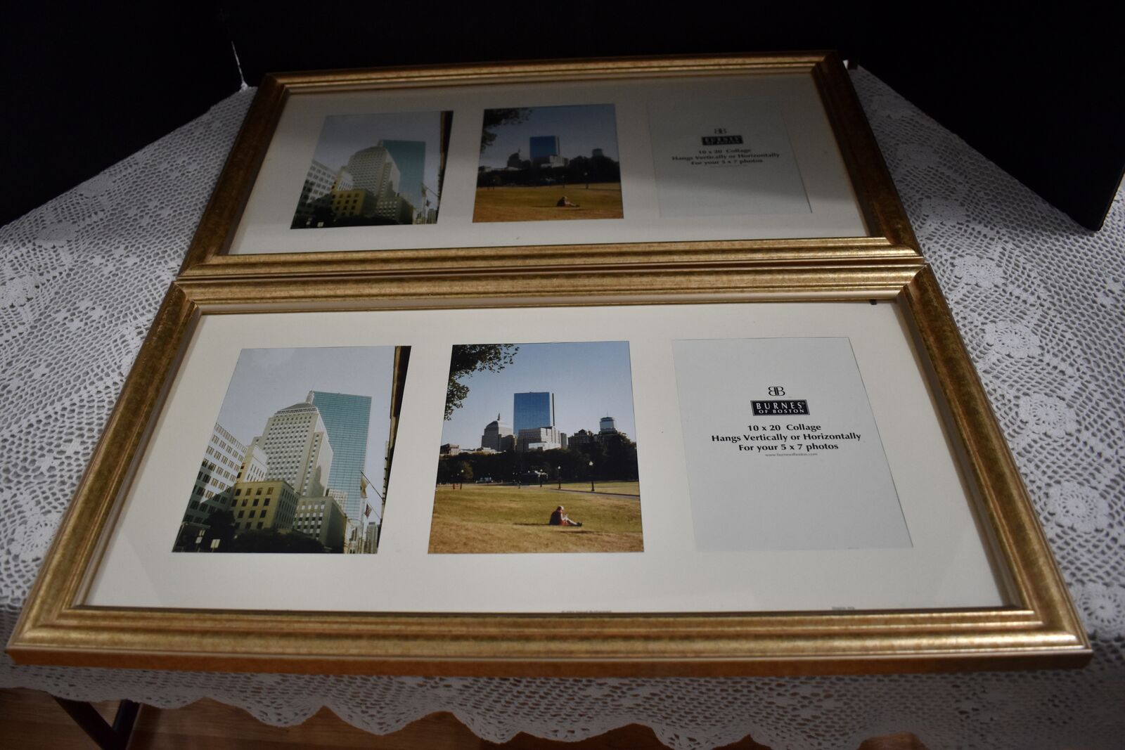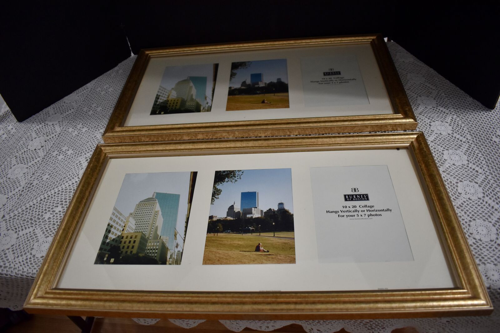 ***We Have… that we are selling at this time in this listing… Two ( 2 ) Separate Beautiful Gold Wall Frames For Holding 3 Separate 5 X 7 Photos. They each have a hook on the back of them for hanging onto a wall. In very nice gently used condition.