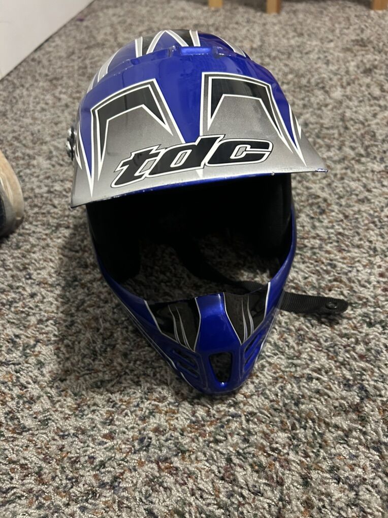 TDC youth large helmet, it’s older but still in great condition! No need for it. It was made back in 2007. Text is best. Thanks!