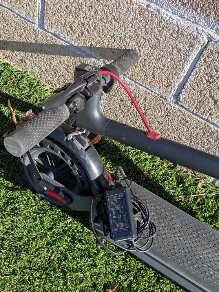 This cool scoot goes 19mph and can travel 17 miles on a charge. Perfect for that 15 minute commute! Carry the charger or charge once per day. Great way to save energy. And beat walking by miles and smiles! This unit is like new condition.