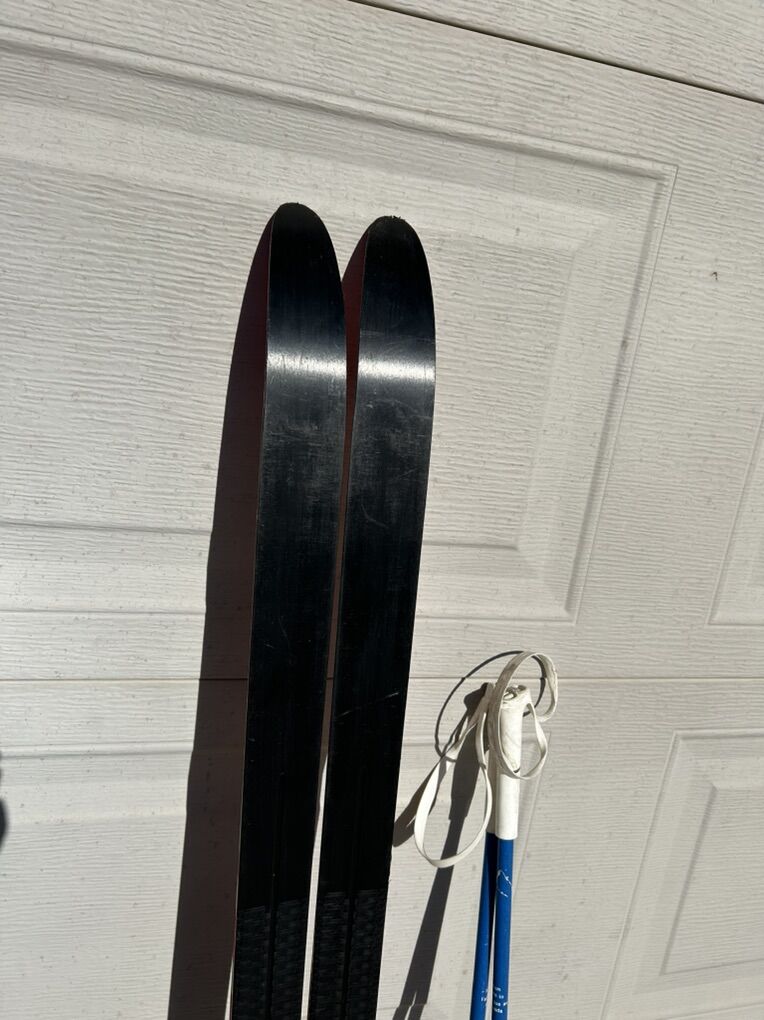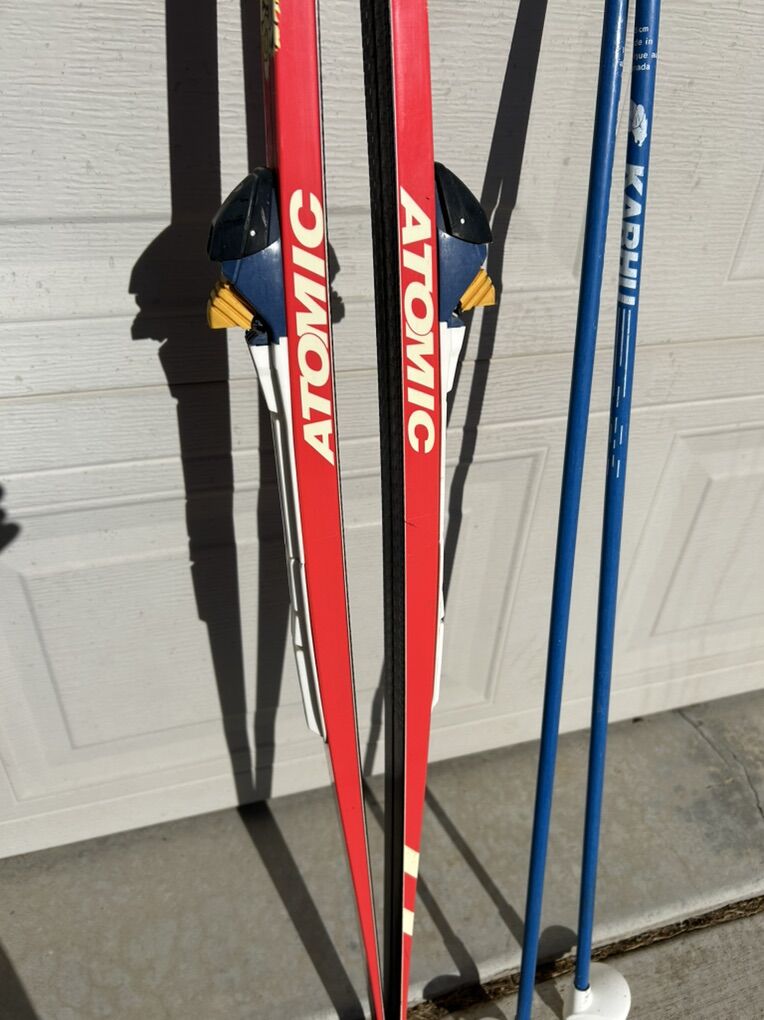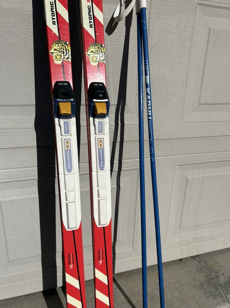 Selling a pair of Atomic Ski Tiger cross country skis in 140cm. Sidecut is 52–47–49 and they come with Salomon SNS Profil bindings. The bases are fish scale with a channel groove, perfect for traction and stability.