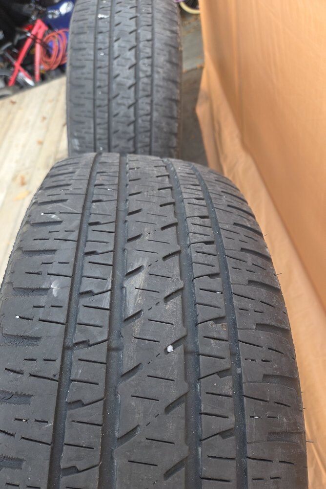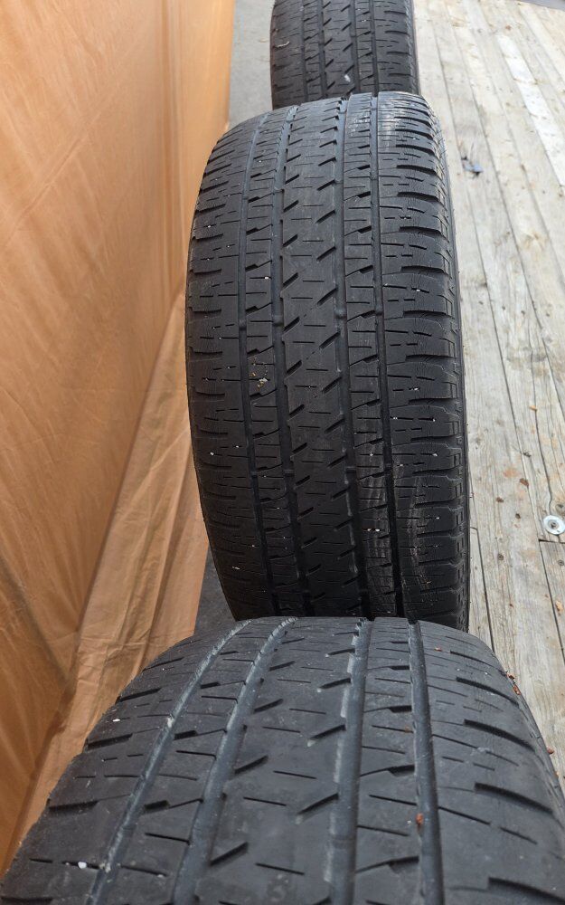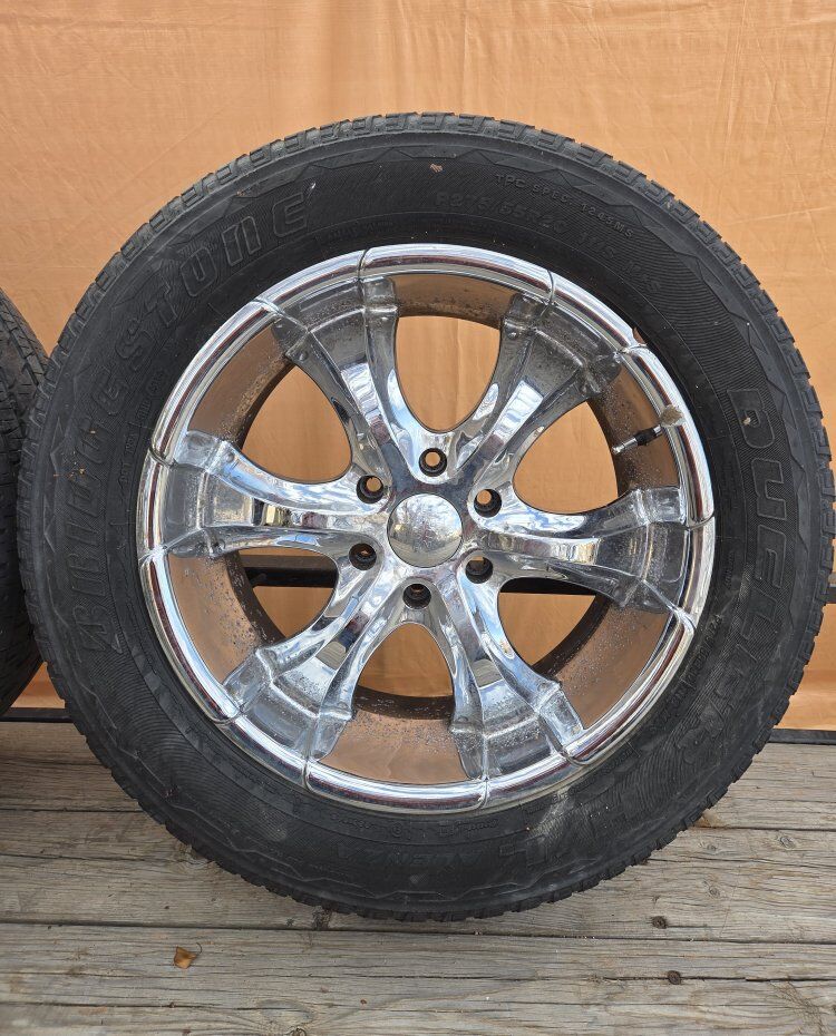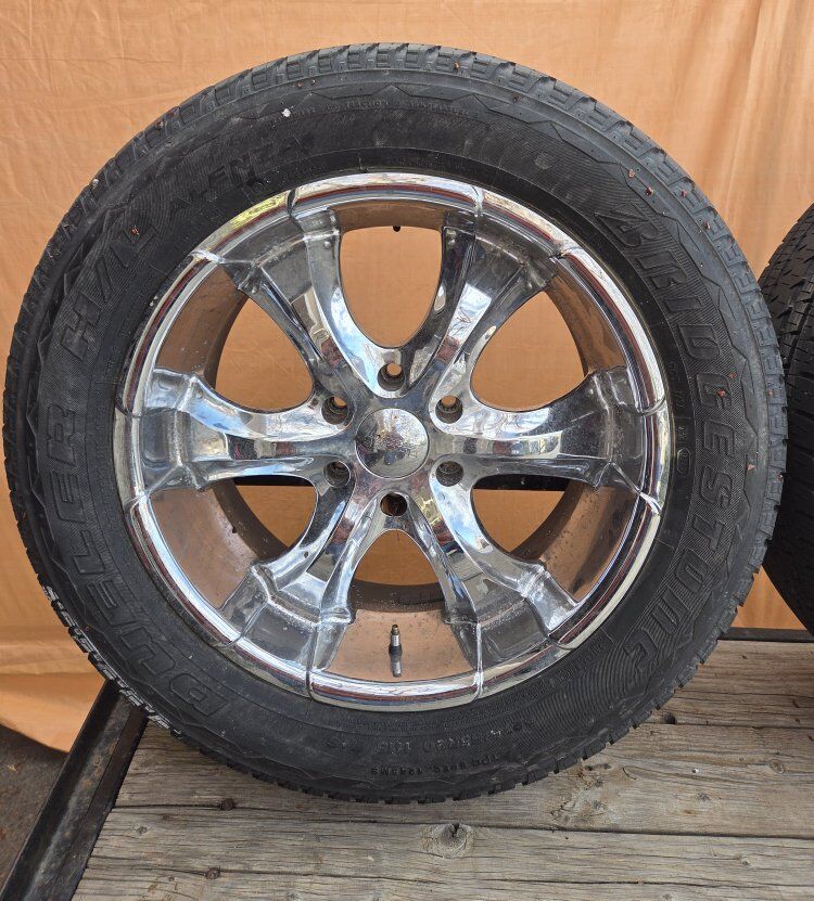 Venmo20" Wheels and Tires 275/55r20. Tires have about 5 - 6/32nd and date code of 2014. They do have some cracking but should last for a year or two. 3 hold air and are fine but 1 tire has a leak to close to the sidewall to fix. call or Text Jason 801-694-5166