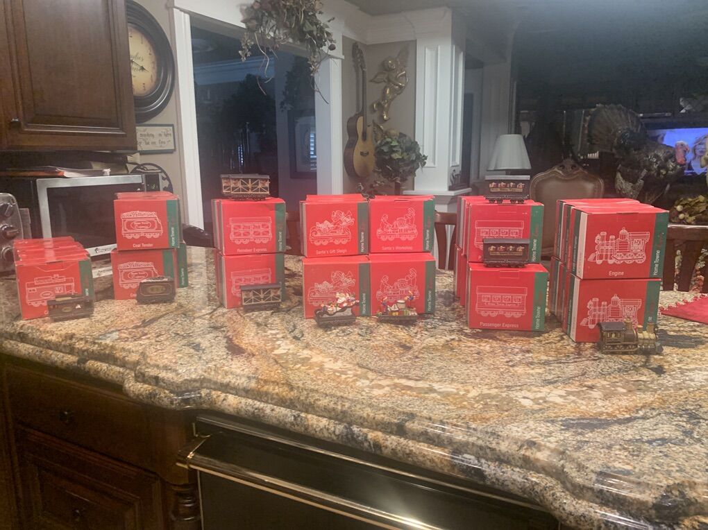 Venmo1998 JCPenny Home Towne Express Edition Train Collectible decorative ceramic models of a classic steam engine, $5.50 each piece. There are 7 engines, 9 Passenger Express, 6 Santa Workshops, 13 Santa Gift Sleighs, 7 Reindeer Express cars, 11 Coal Tenders, 7 cabooses.