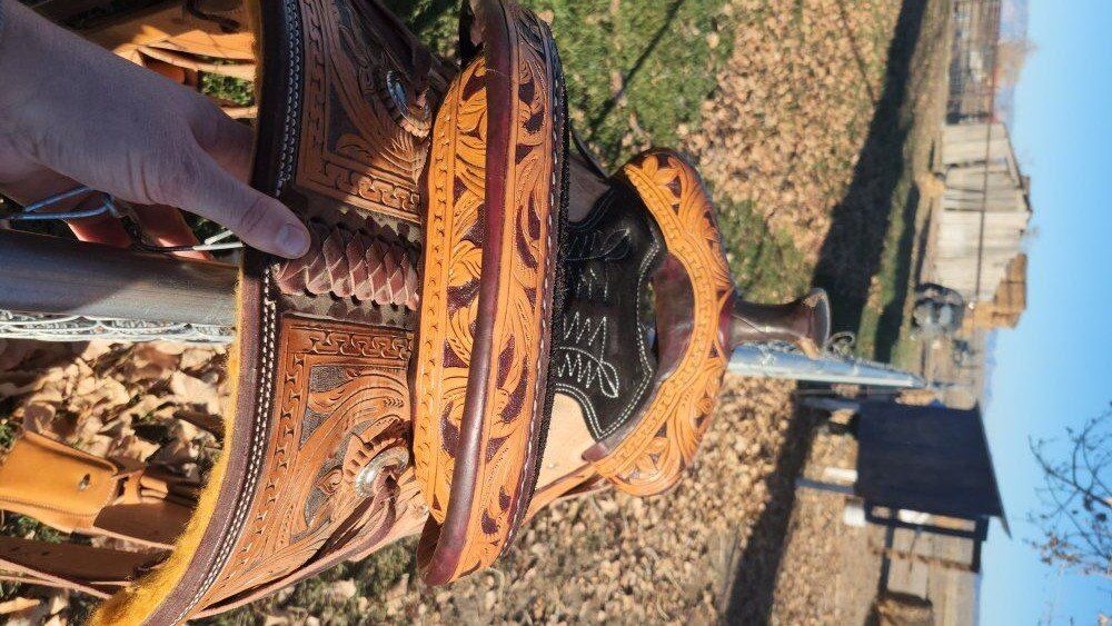 15 inch Sheridan lady single skirt trail saddle. 7 in gullet. Pretty much brand new. It's still squeeky new. Dally roping horn. I bought a different saddle that fits better. no codes no scams no trades cash only
