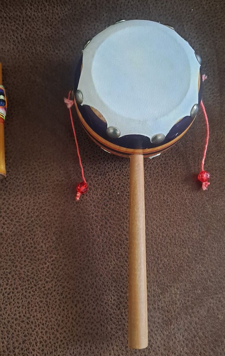 VenmoPeruvian Native Pan Flute wind instrument 13 pipes , natural bamboo 11 1/2" length 4" width Mexican wood monkey spinning drum 8" length 3 1/2" width AWESOME Sounding Instruments great condition