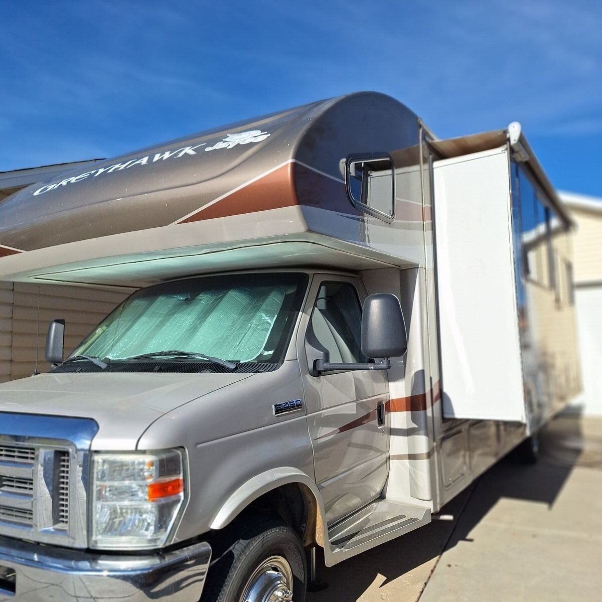 2011 Jayco Greyhawk Ford E450 chassis. 31ft long. This motorhome has every option you could get when new. Sleeps 6-7. Self-leveling hydraulic jacks. 2 tvs. onan 4k generator. DC-AC power inverter. Upgraded RV mattress. Walk around master bed. Heated tanks. Power awning. 79,000 miles.