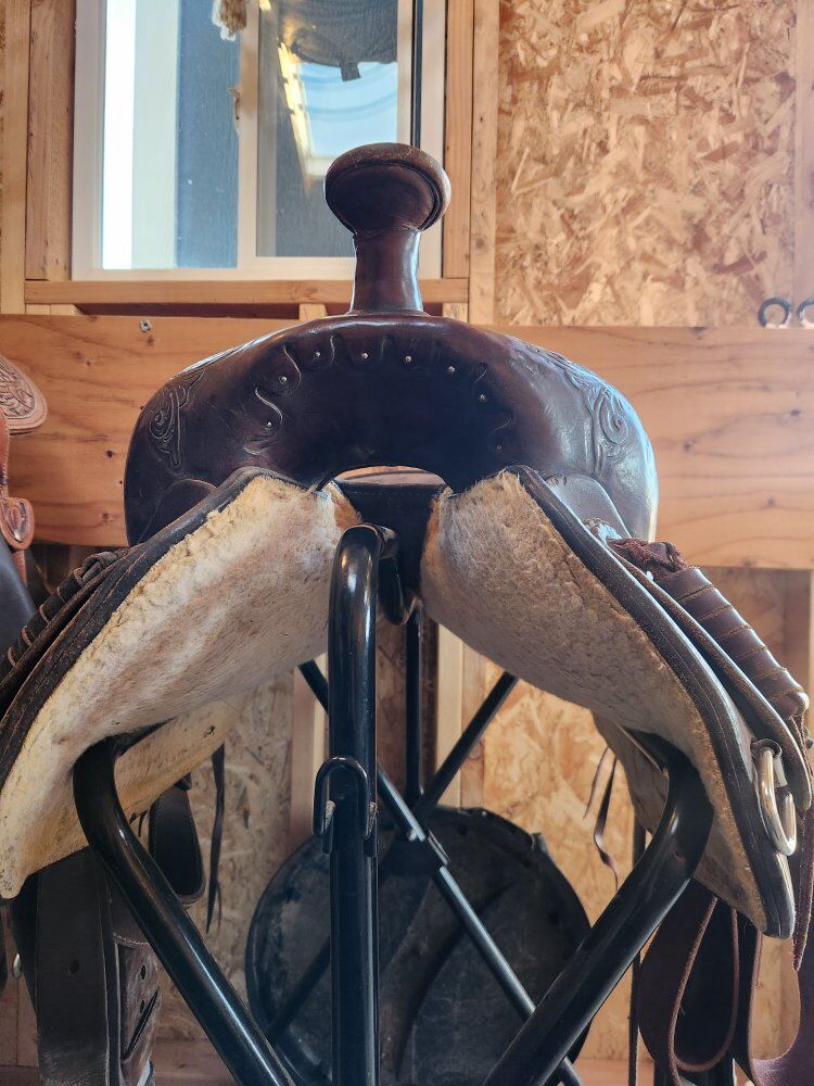 Venmoused not abused. the tree is solid. no fractures. comes with 5inch thick back cinch, front cinch, breast collar. used it up until this fall. very reliable saddle. I need to down size. I will condition and clean it before it leave to buyer.