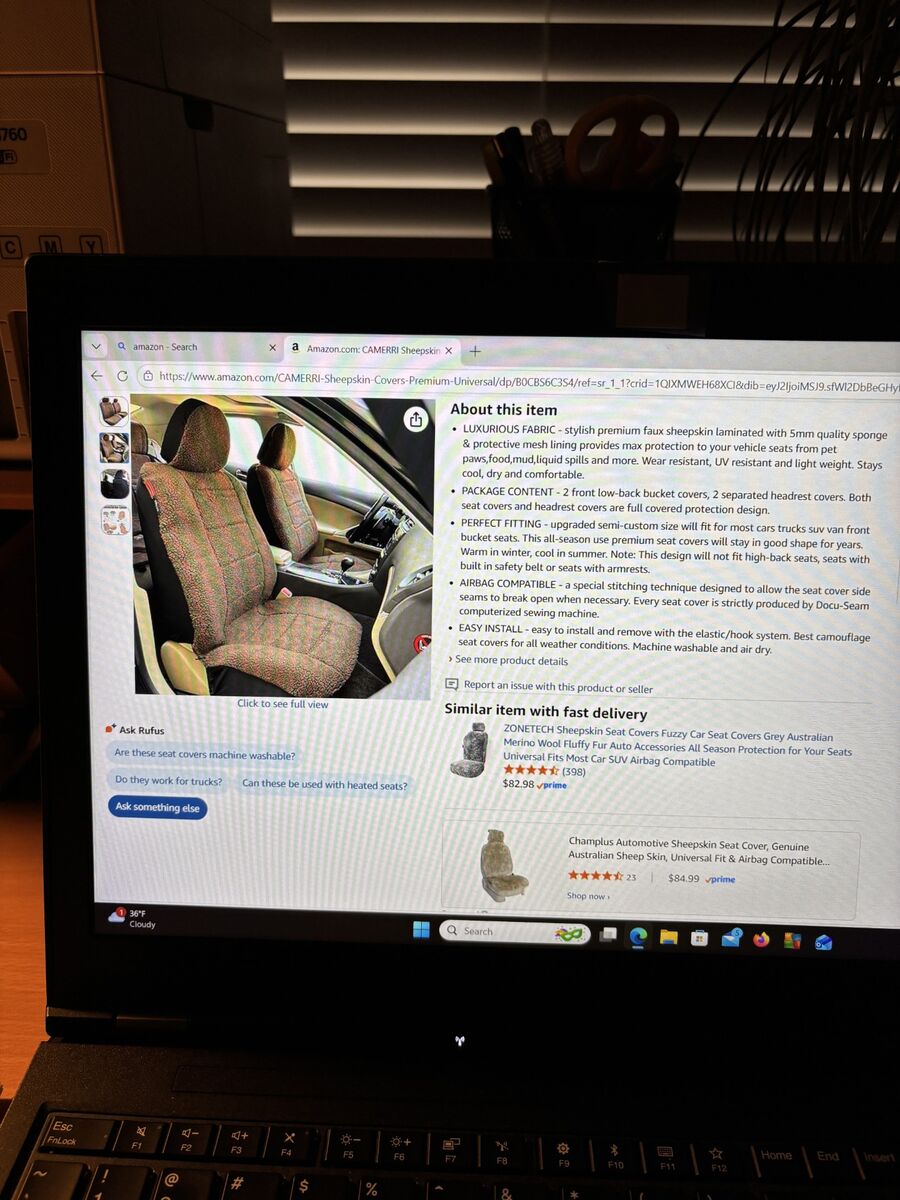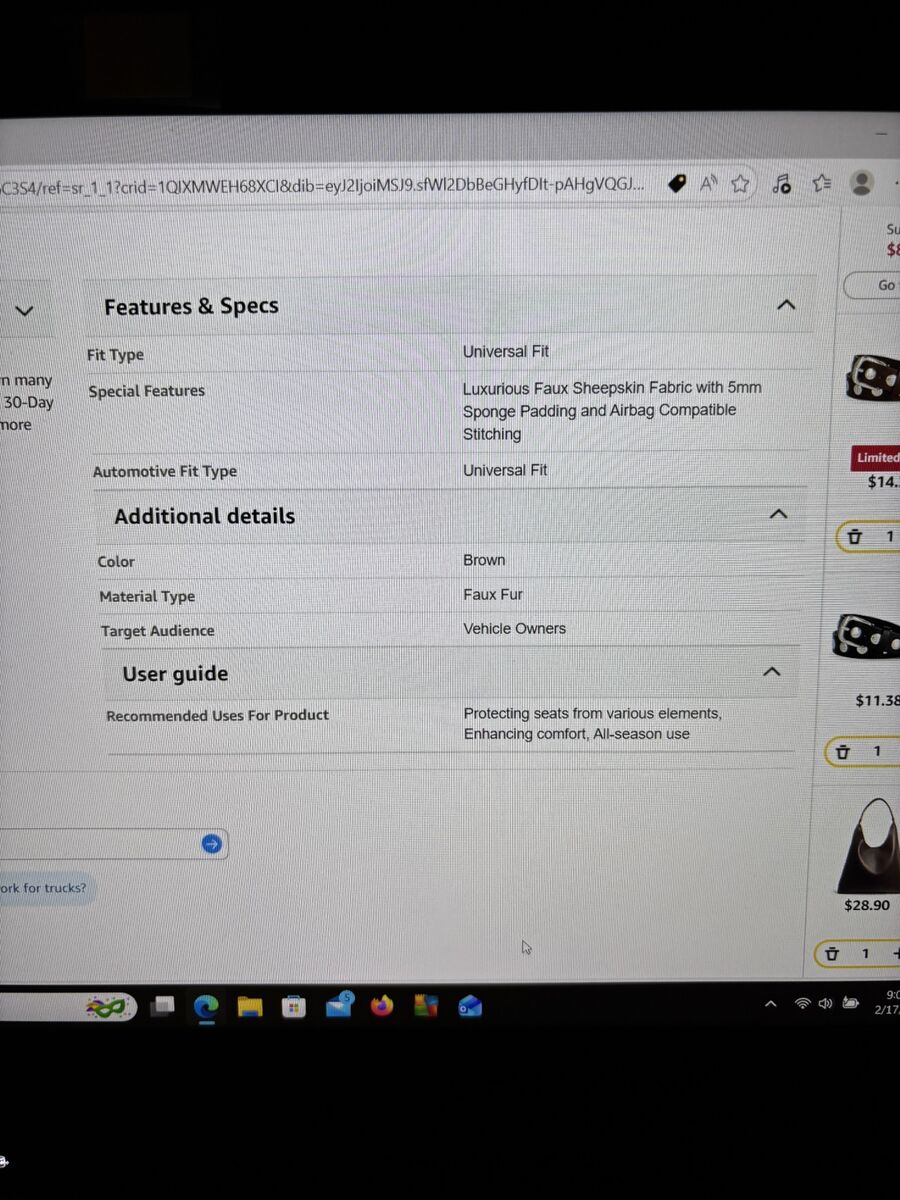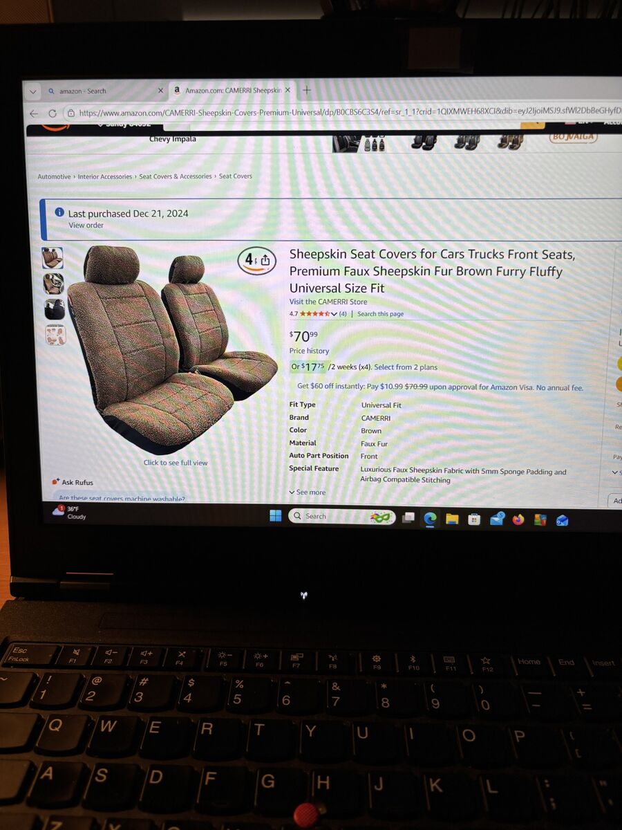 Camerri Sheepskin Seat Covers for Cars/Trucks Front Seats, Premium Faux Sheepskin Fur Brown Furry Fluffy Universal Size Fit. Brand New bought on Amazon for $68.99
