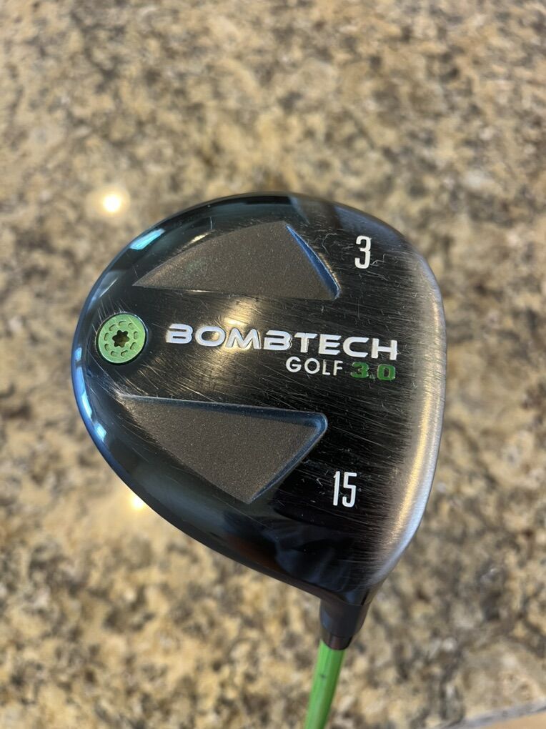 VenmoGood condition Bombtech 3.0 15 degree 3 wood with head cover. Regular flex shaft. Midsize grip
