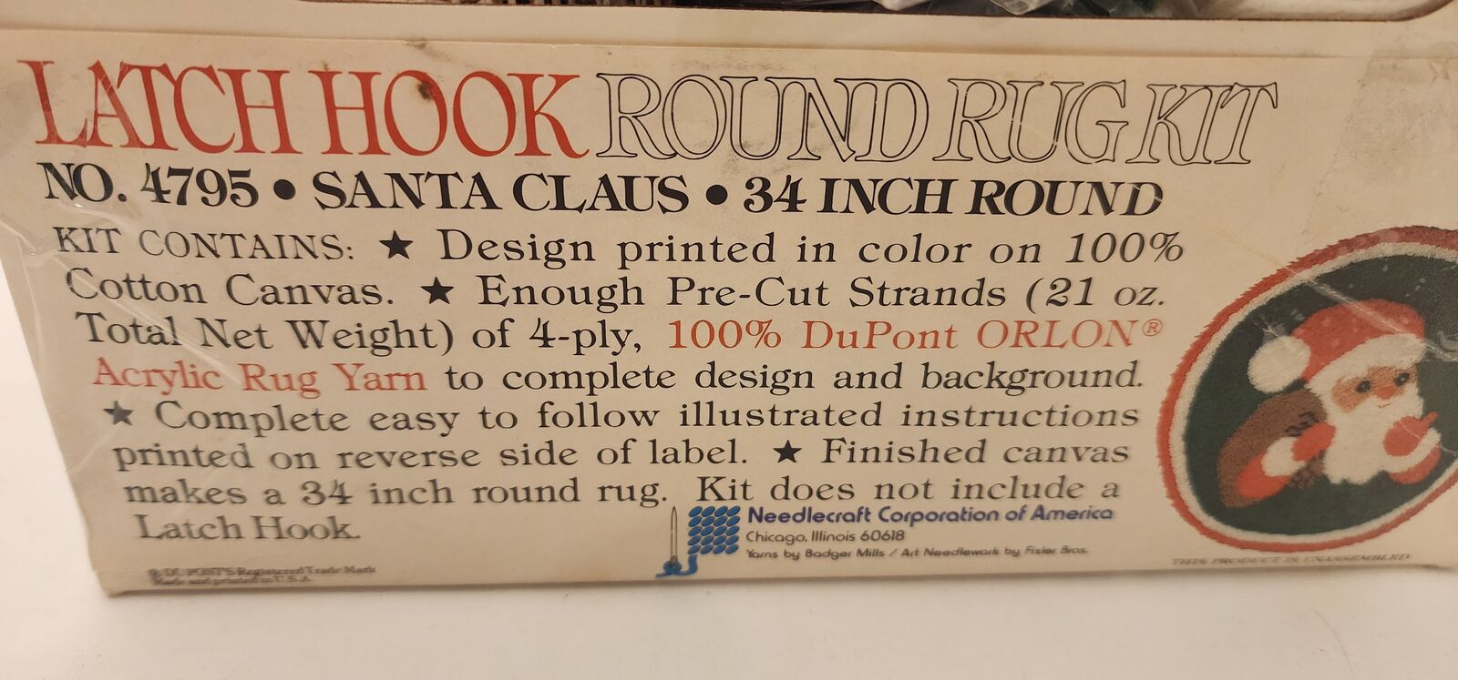 34 Inch Circle Santa Rug Latch and Hook Kit - VINTAGE