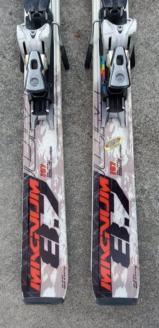 VenmoGreat 167 cm Blizzard Magnum 8.7 Max downhill all mountain snow skis in excellent condition. Skis have Salomon adjustable to your boot size bindings. Tip/Waist/Tail Dimensions: 126/87/111mm. Turning radius 17.5m. Bottoms are clean. Text please!