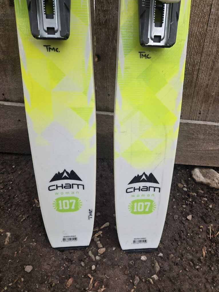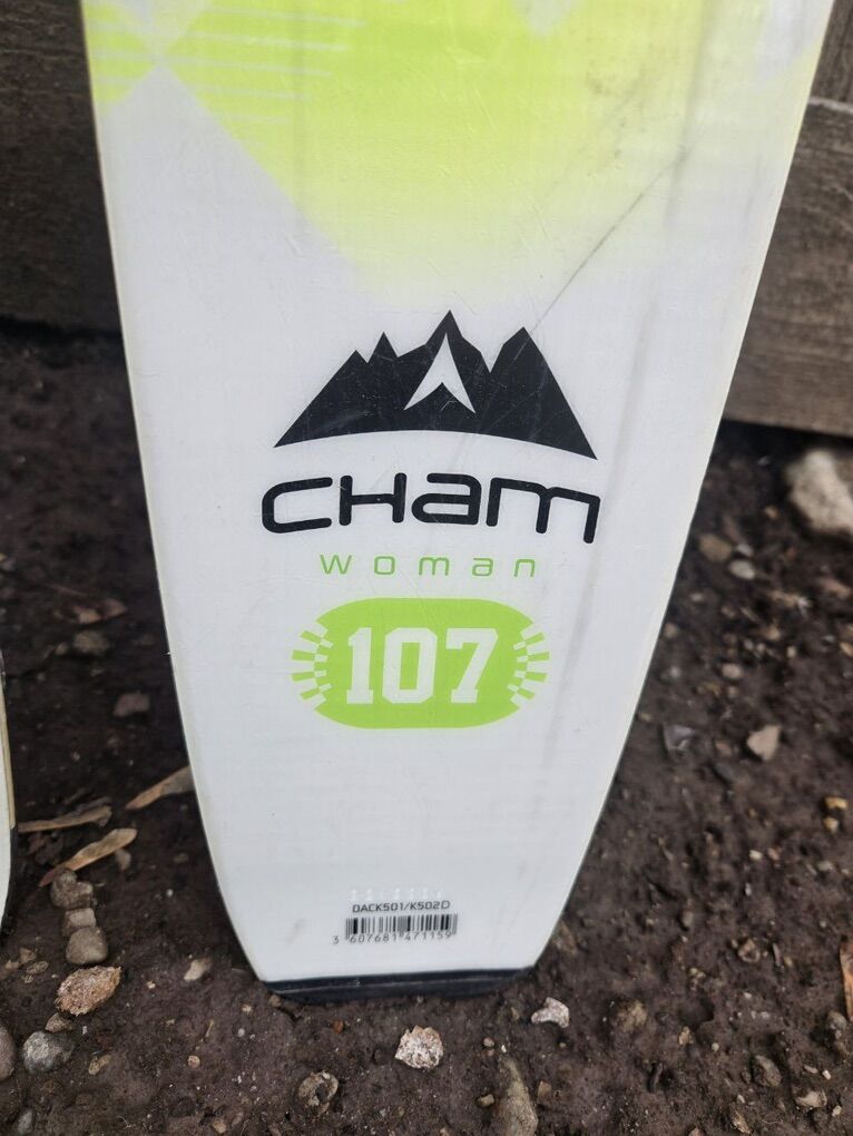 Venmo166 cm Women's Dynastar Cham Woman 107 Rocker Downhill skis with adjustable to your boot size Look Bindings. Tip/Waist/Tail Dimensions: 137/107/122mm. Topsheets, bases, and edges are in good condition. One of the brakes on the bindings tip has broken (see pictures in listing). Text please!
