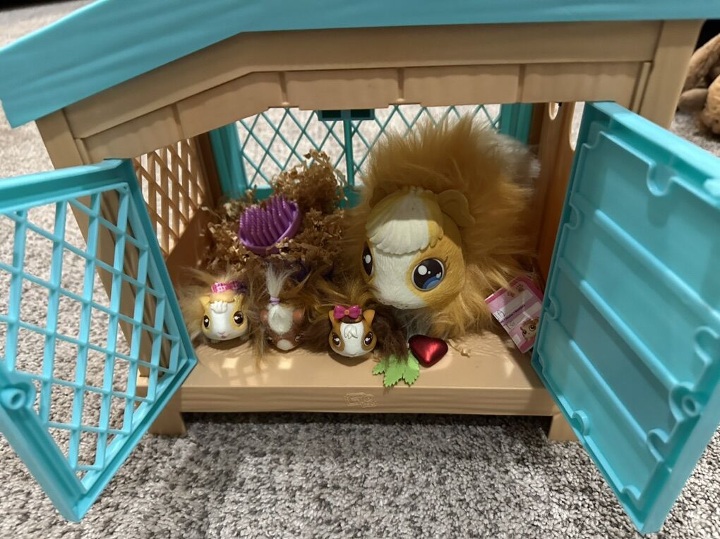PayPalInteractive Mama Guinea Pig: Nurture your mama guinea pig toy for kids by patting her, feeding her, and brushing her to make her heart light up in joy – this guinea pig talking toy is ideal for nurturing play for ages 4 and above Magical Birth Surprise: Our soft, interactive guinea pig plush toy for girls and boys comes with a deluxe hutch – witness the magic as our stuffed guinea pig figurine enters her hutch and reveals her three adorable babies Surprise Care Package: Open the hutch to discover our Mama Surprise guinea pigs and surprise care pack accessories; care for these interactive animal toys for kids by brushing their hair, feeding them celery, and petting them using the care package