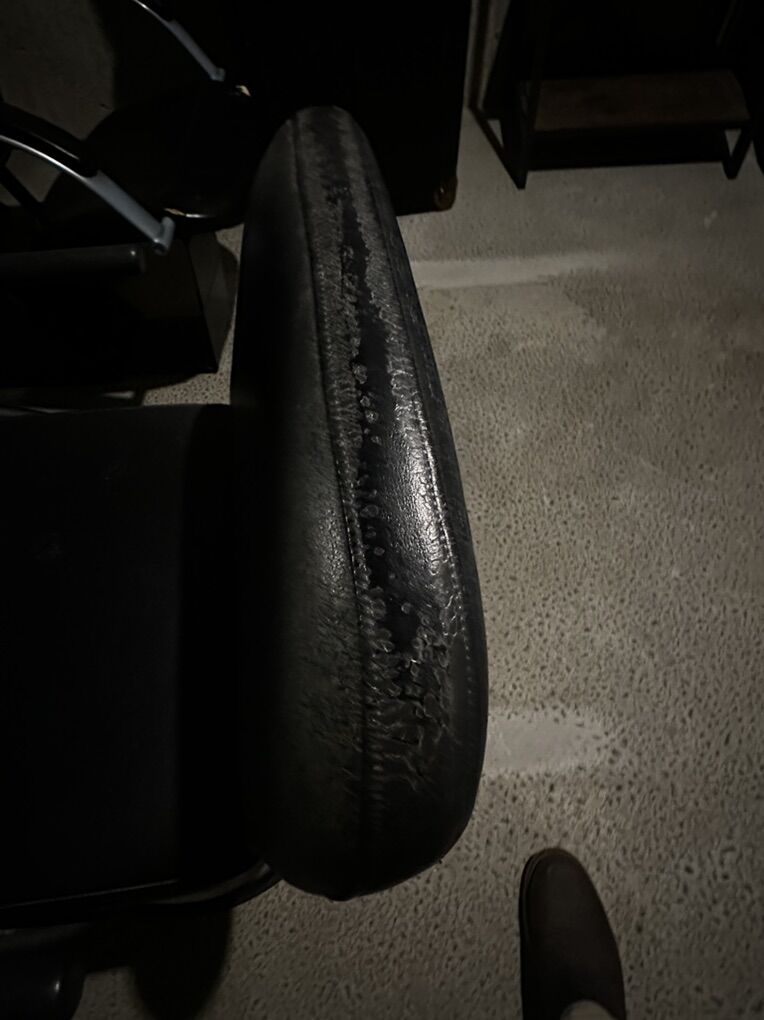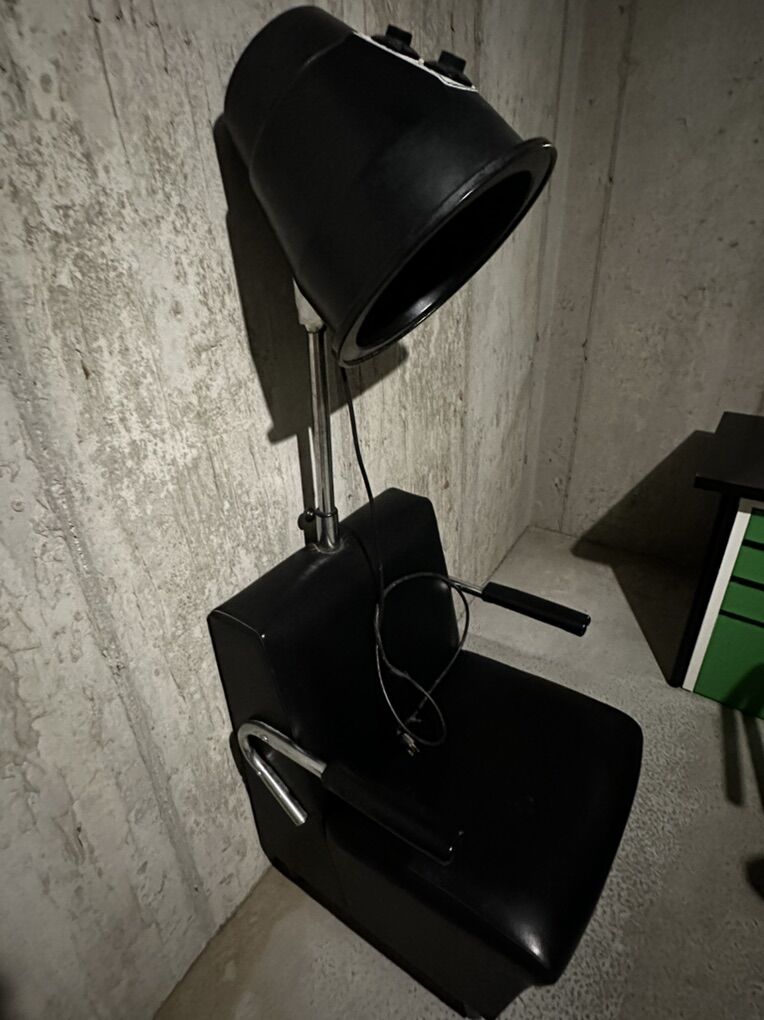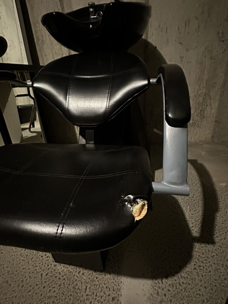 VenmoSalon chair, cabinet, table, mirror, shampoo bowl, hair dryer chair. Pictures show damage the shampoo bowl chair and salon chair back.