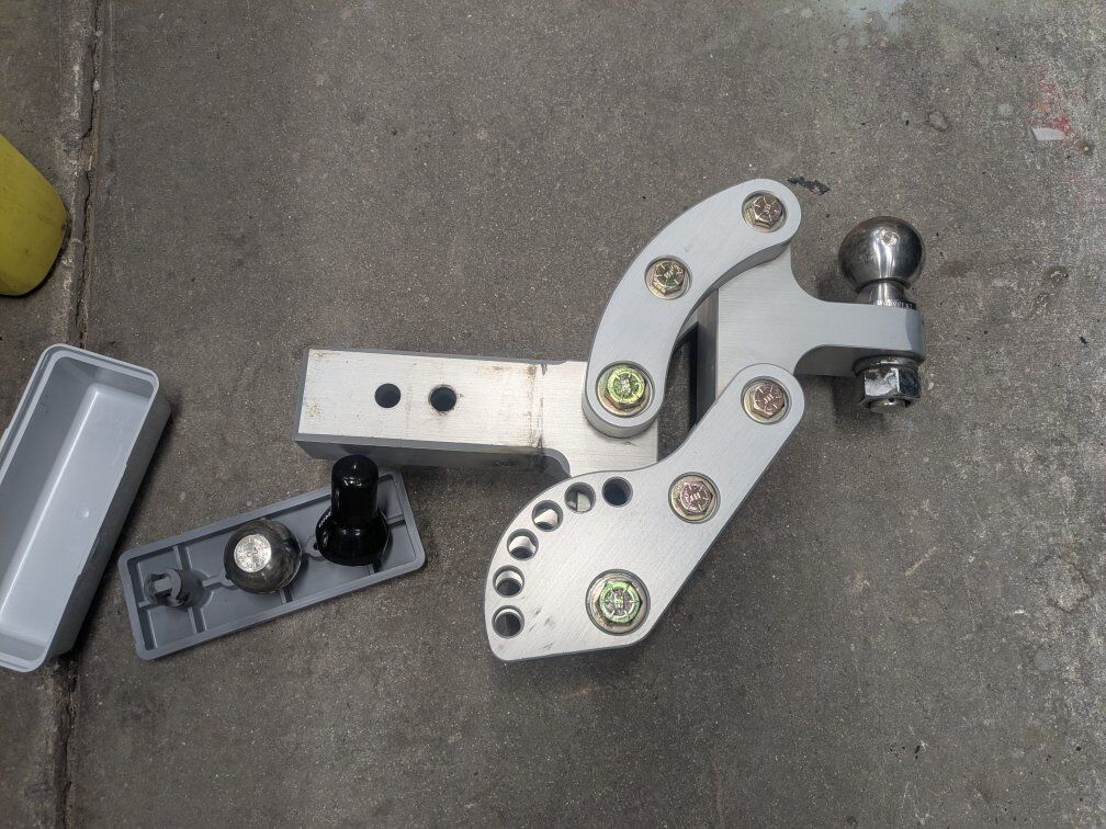 Solid billet machined aluminum. Lightweight 14k rated 2-5/16 and 2" quick ball included 7.5" drop from receiver top