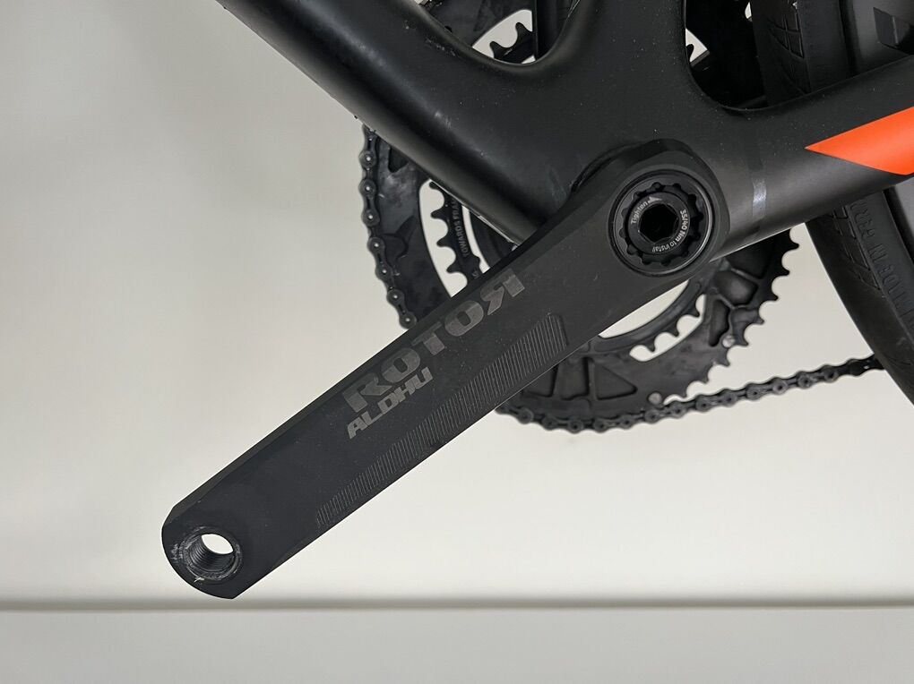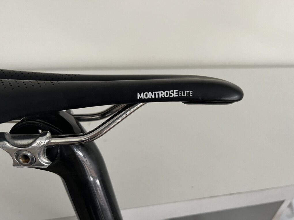 Specs: Front Derailleur: Shimano Ultegra di2 Rear Derailleur: Shimano Ultegra di2 Shifters: Shimano Ultegra di2 Crankset: Rotor Spider Power Meter (36-52) Cassette: Shimano 11-34 (amazing for climbing) Chain: Shimano Brakes: Shimano Ultegra Wheels: Bontrager AeolusPro 3 ( Carbon) Stem: Enve Handlebar: Bontrager XXX Saddle: Montrose Elite Pedals: not included