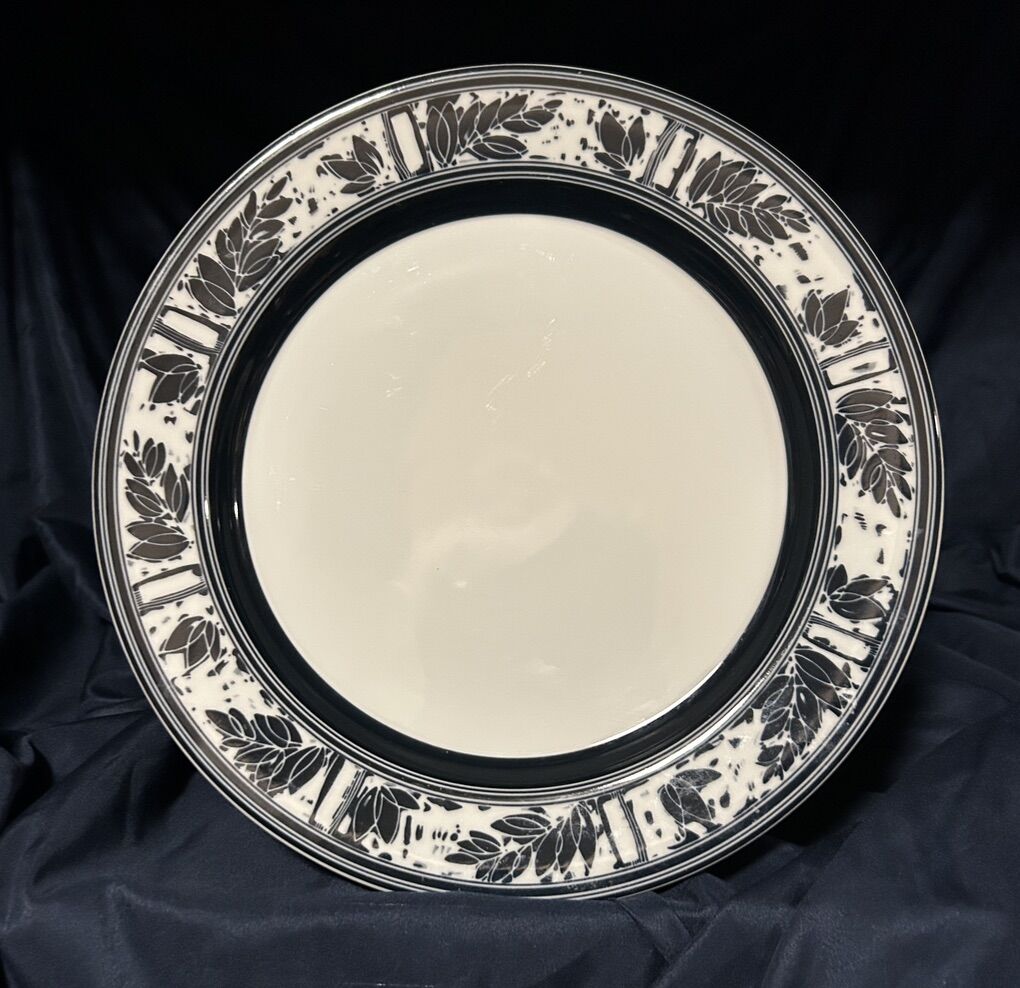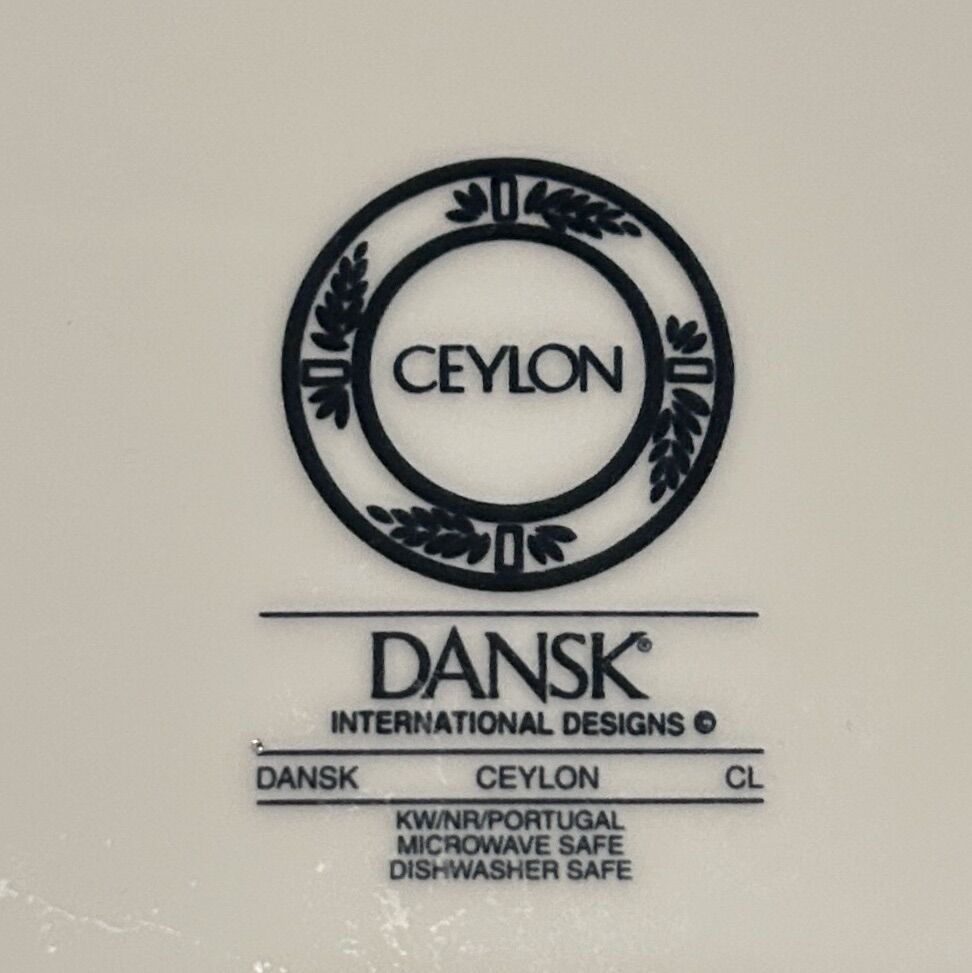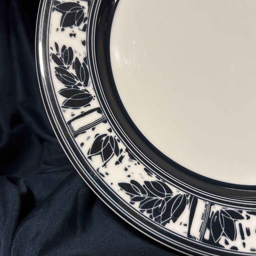 ApplePayThree Dansk Ceylon Dinner Plates In pure white with a modern dark navy leaf pattern along the raised rim. No chips, cracks, crazing or defects- only a very few utensil marks on each plate. $80 for all 3 or $30 each.  Delivery available to a convenient location when in your area for $5.