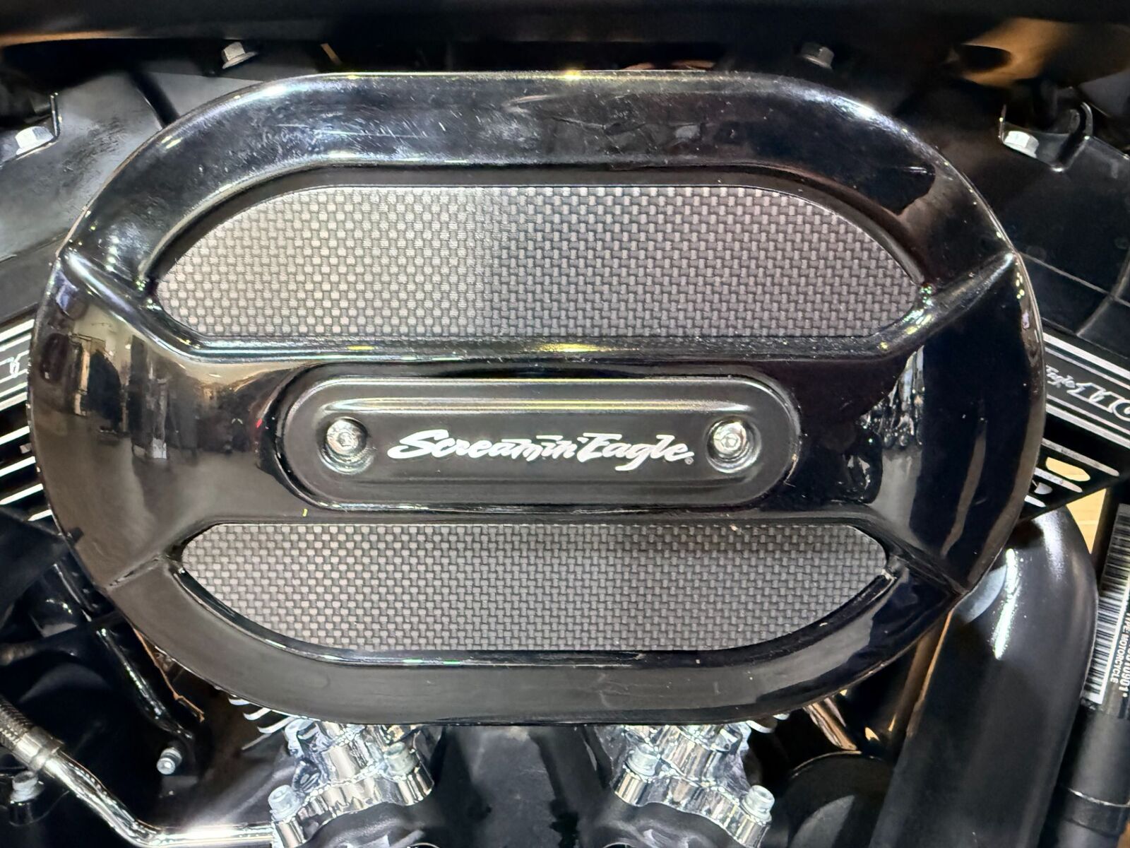 Power Blackout This takes dark to a new level. A powerful one. New gloss black Screamin’ Eagle Air-Cooled Twin Cam 110B engine, gloss black lower forks, axle nut covers, handlebar and riser. Black brake lever and hydraulic clutch assembly. Black over/under shotgun exhaust with slash cut mufflers. Take our word for it, it is blacked out from front to back and head to toe in attitude. We went out to check the pulse of the street and then into the garage. The Fat Boy S rolled out. Raw custom attitude with the most powerful engine you can get in a cruiser this year.
