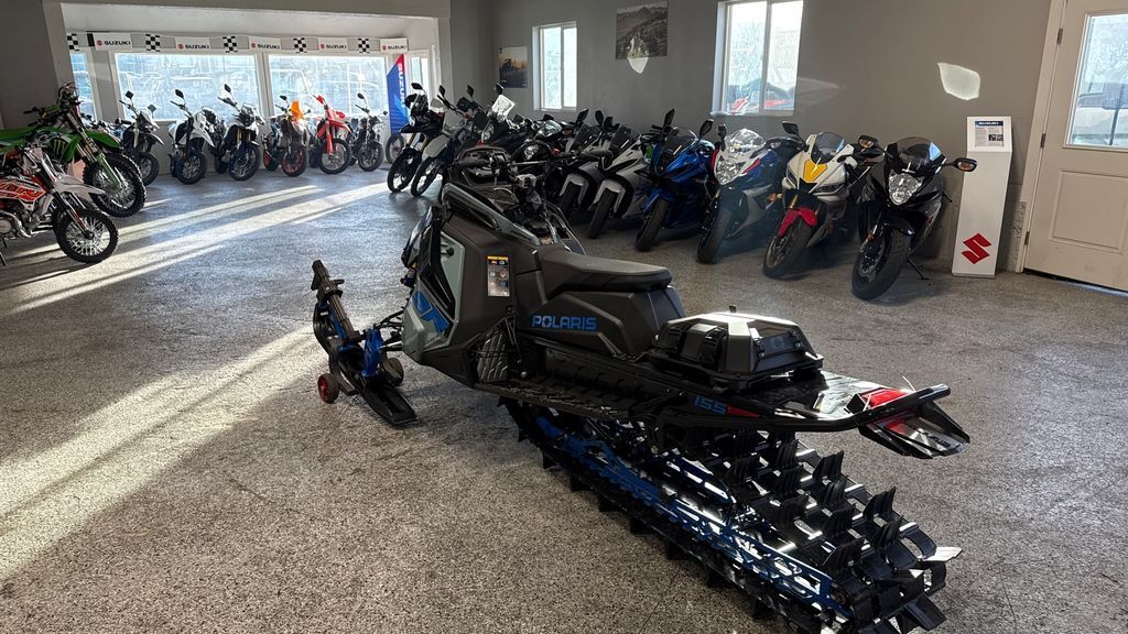 2026 Polaris® Patriot 9R RMK Khaos 155 Hemlock Blue / Black / Velocity Blue The Ultimate in Dynamic and Agile All-Mountain Performance The RMK Khaos delivers transfer and traction for a wild and playful ride in the backcountry. RMK Khaos models are lighter than the competition for easier maneuverability and better flotation in deep snow conditions. Features may include: Quicker Response. Higher Track Speeds. QuickDrive is the lightest drive system in the industry and produces the lowest inertia for optimum response. Choose between the 325 Series 9 Track for instant traction and forward drive in deep snow or the 275 Series 8 track for versatility and traction in varying snow conditions. Float And Fly The RMK Khaos Rear Suspension features geometry that provides transfer and traction for light, playful handling, along with the best response and control in all riding zones. Available in 146, 155 and 165 lengths. Big Time Shocks for Big Time Terrain Ultra-premium Walker Evans Hi-Lo Shocks are the best of the best in extreme mountain conditions. They feature remote reservoirs for increased oil capacity to ensure all-day performance and durability, along with high and low-speed compression adjustment to dial in the ride.