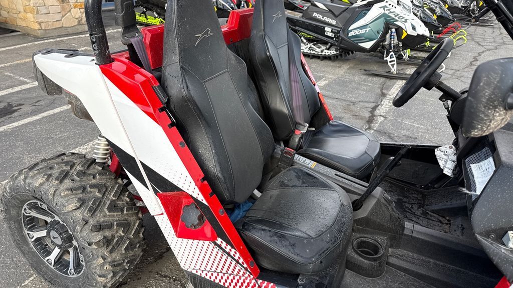 2015 Arctic Cat® Wildcat® X EPS PERFORMANCE If you want to know the one thing that makes Arctic Cat ROVs great, it’s everything — everything working together in perfect harmony. From the riding position to engine power to ground clearance and suspension travel, Arctic Cat riders around the world covet their Side by Sides for the freedom and abilities their Side by Sides give them. Features may include: 1000 H2 V-Twin High Output 4-Stroke Engine with EFI The 951cc, H2, liquid-cooled V-Twin EFI engine features a Pentroof Hemispherical Combustion Chamber, providing the efficiency advantages of 4 valves per cylinder. Oxygen is inhaled though a 50mm throttle body. And exhaled through a 2-into-1 tuned ceramic-coated exhaust with a new pipe and closed loop EFI system for improved fuel efficiency. Looking for a little extra getup and go? The X Limited and X models have 90+ horsepower. JRi ECX-1 Suspension with 5-Link Trailing Arms With a full 18-inches of travel, we're still the only machine in the category that goes to this extreme to keep your wheels firmly planted on the ground. Add JRi-ECX-1 shocks to the mix and say good bye to the bumps. Digital/Analog Gauge Instantly access the information you need. The digital/analog gauge provides 14 critical operation indicators including clock/hour meter, fuel level, mode button, set/reset button, odometer/trip, gear position, speedometer/tachometer, needle display, differential lock, high beam, battery condition, temperature and oil pressure. Maxxis Bighorn 2.0 Tires with Aluminum Wheels Right at home in the deep sand, on the rocks or on the trail, Maxxis® Bighorns offer a wide footprint, excellent shock absorption and large shoulder lugs, providing great traction on all types of terrain. Electronic Power Steering (EPS) Thanks to variable assist electronic power steering (EPS) which activates automatically at the moment of ignition, steering your machine requires minimal effort even at rock crawling slow speeds. Race-Inspired Bucket Seats Designed by the guys and gals who chase the checkered flags, these high-back seats are designed to keep all body types in good riding posture across all kinds of terrain. Infinitely Adjustable Tilt Steering Our adjustable tilt steering allows the rider to put the steering wheel exactly where they want to provide the most comfort and confidence. Front & Rear Aluminum Bumpers With painted aluminum bumpers, the WildcatTM X Limited and X models look even wilder. And they're tough enough to dish it out as well as they take it. 300 lb. Box Capacity with Tie Down Hooks When you travel far and wide, you often need to bring supplies. The rear cargo box carries up to 300-lbs. of whatever you need to get where you're going. Automotive-Style Paint After you're done covering it in dirt, it's nice to know you can hose it off and have it look pretty as new. That's the advantage of automotive-style paint.